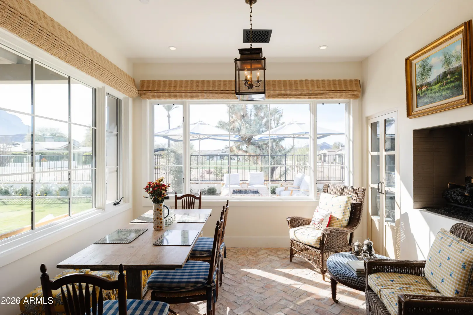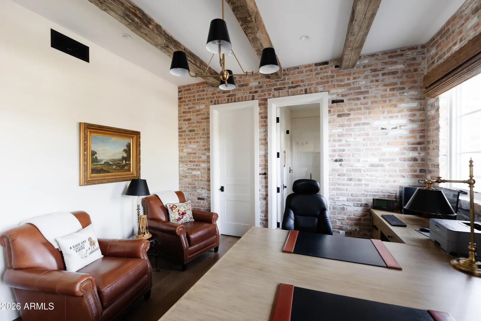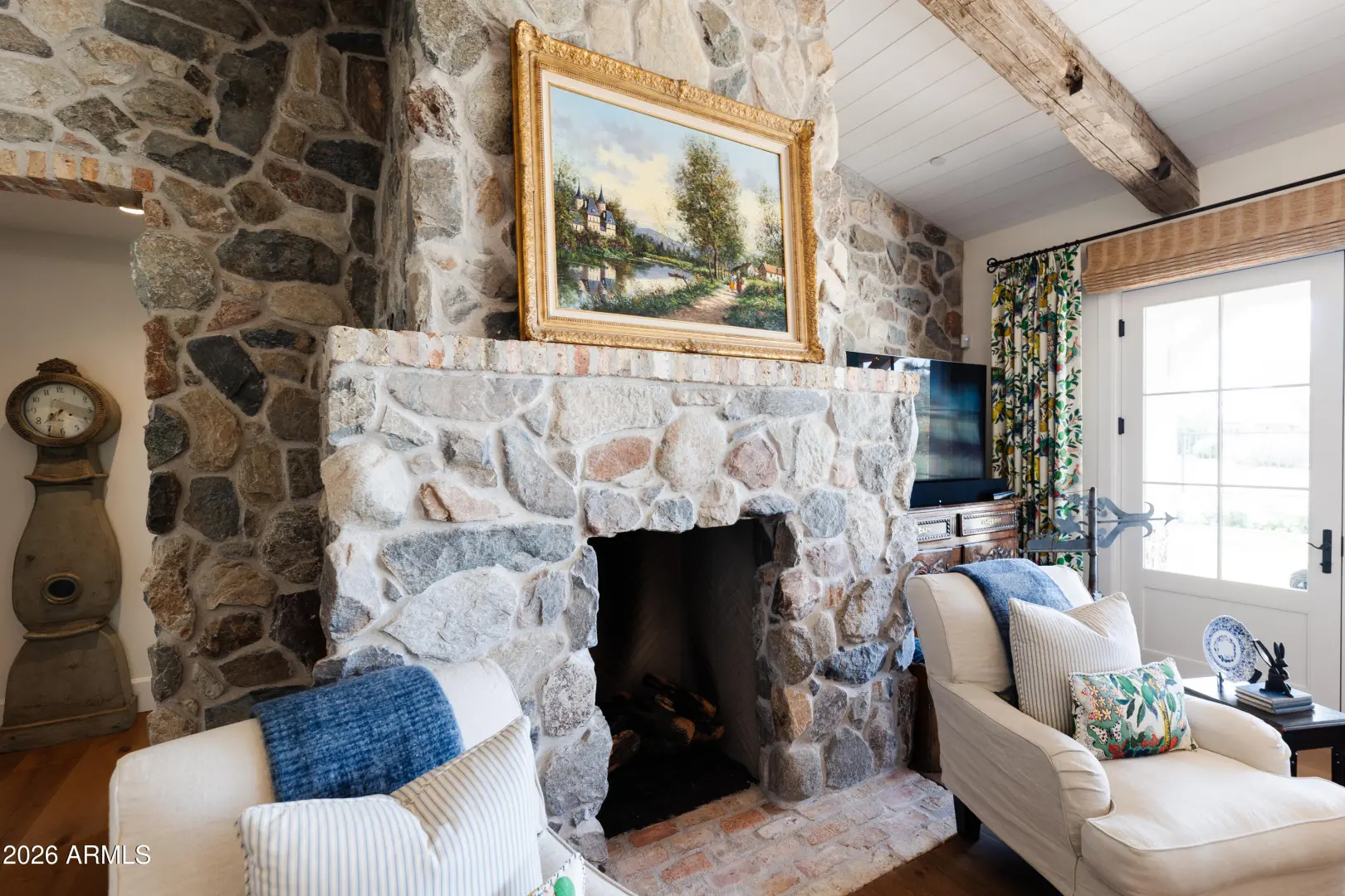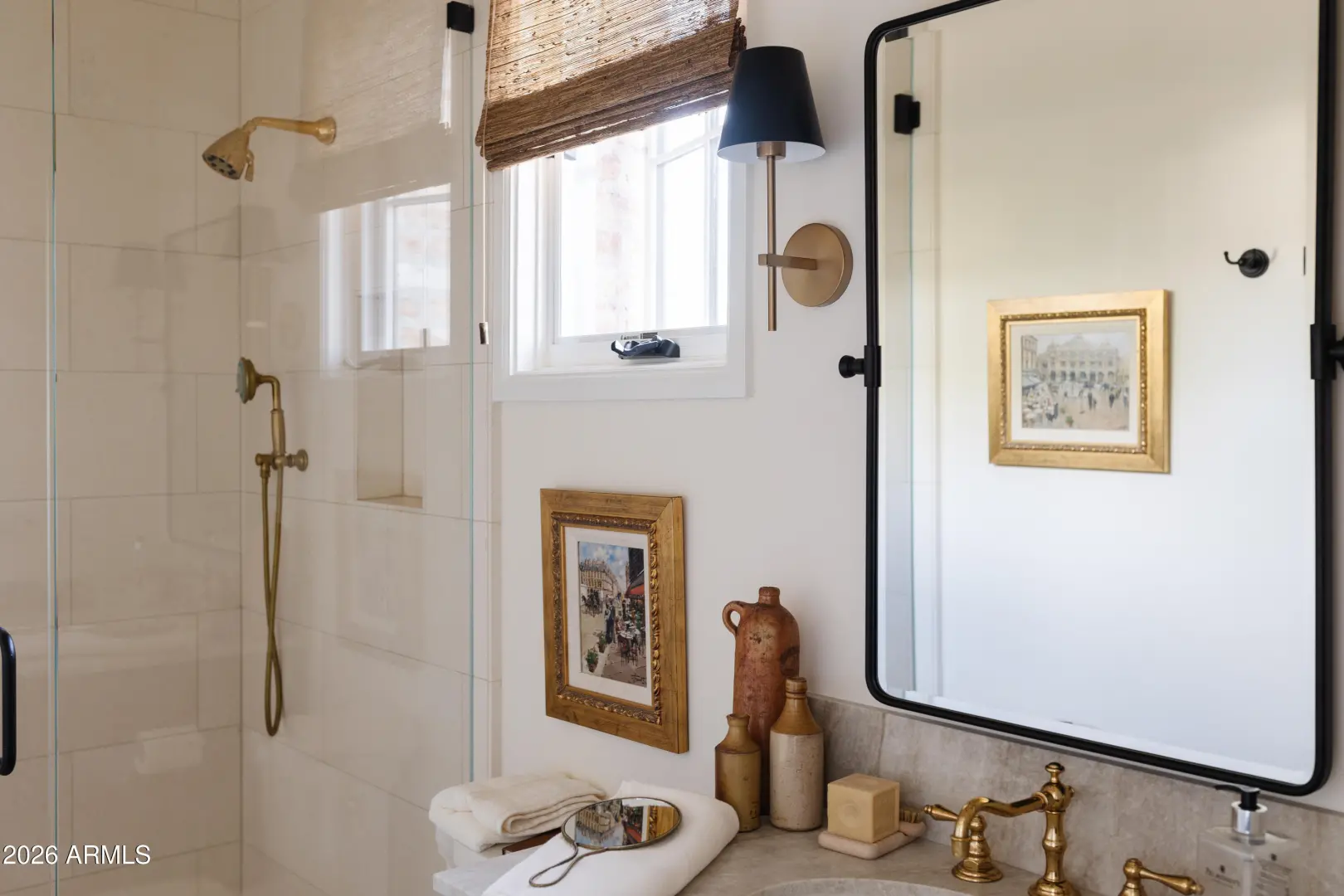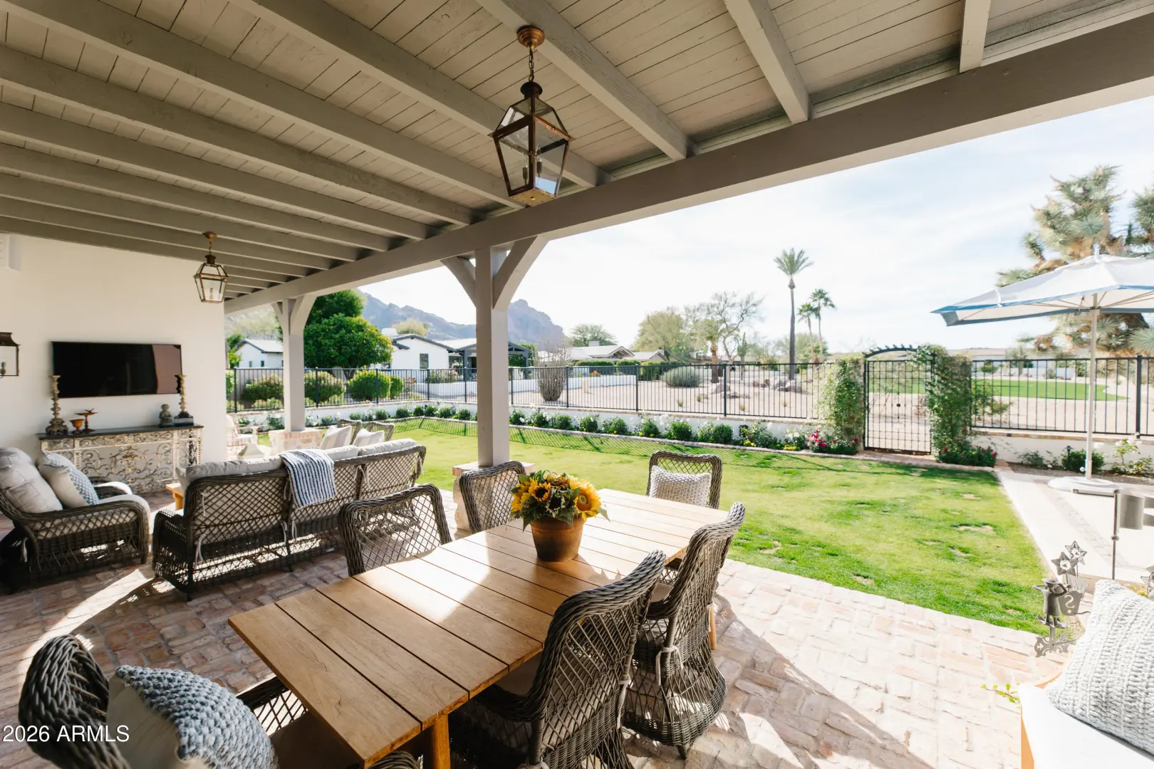 Welcome to a one-of-a-kind jewel box nestled in the gated community of Mountain Shadows East. Featuring Reclaimed beams from Quebec, Gas lanterns from New Orleans ,Chicago brick and custom cabinetry by Burdette . The layout is thoughtfully designed with a master suite, guest suite, third bedroom used as a dual office and a music room. Butlers pantry and coffee bar off open concept kitchen , a separate eating area with niche fireplace and stunning Camelback mountain views are just two examples of living well. Outside the charm continues with a welcoming front porch ,Dutch door and fountain . The deep covered back patio looking onto the pool and fire pit and open area is lush. A custom built masterpiece ,this home is a testament to craftsmanship, history and the art of fine living