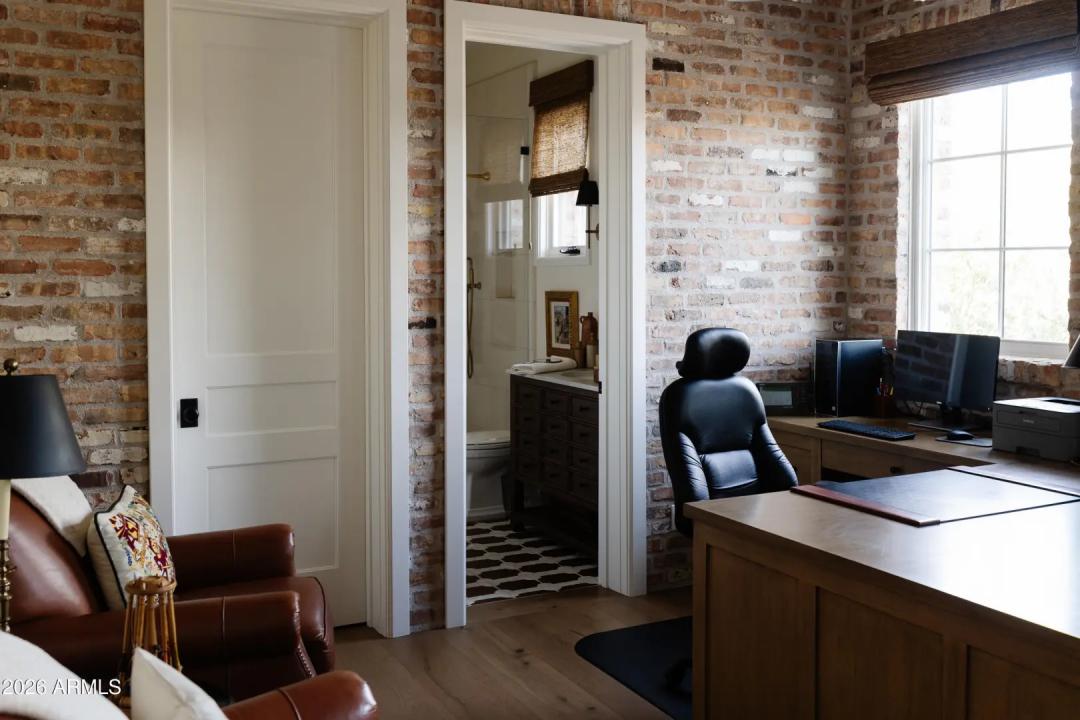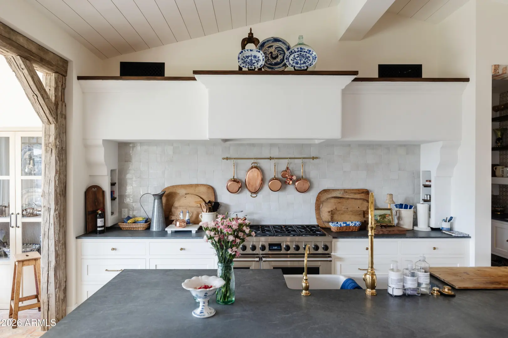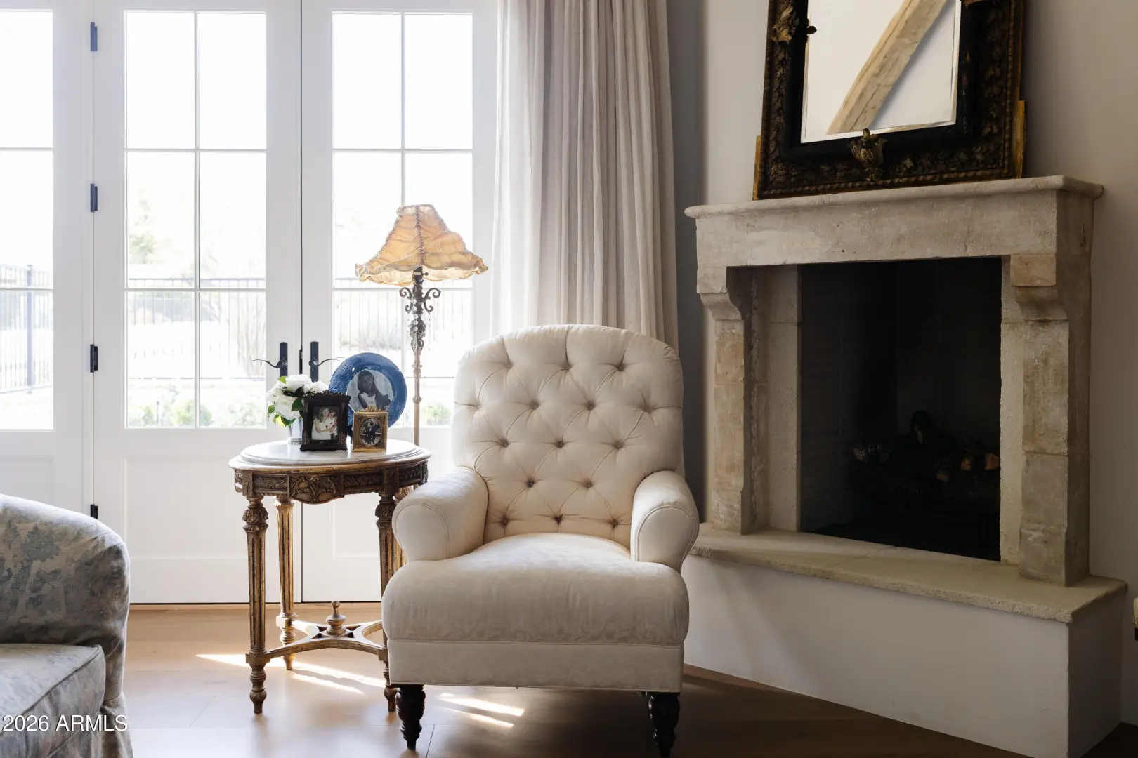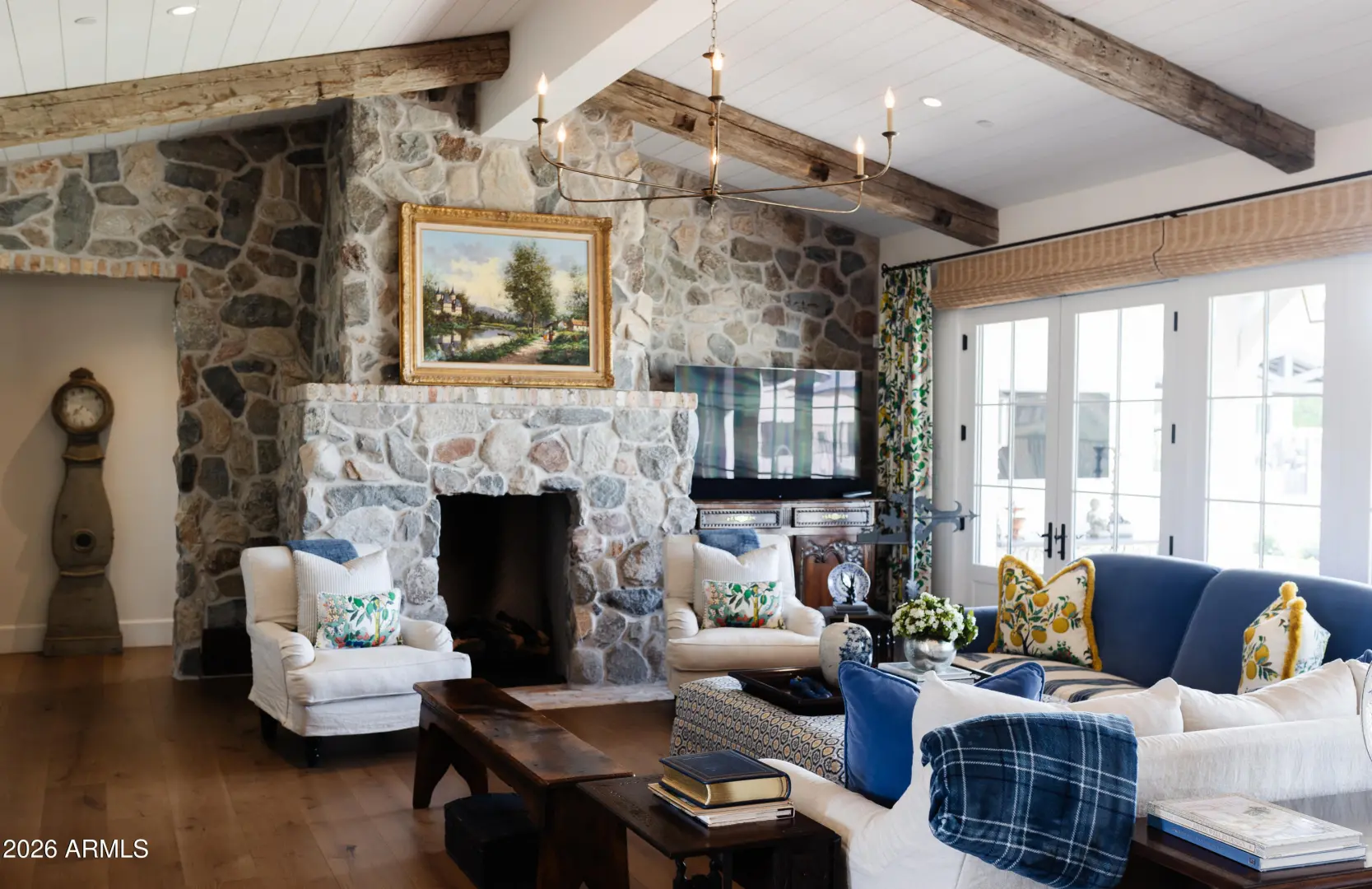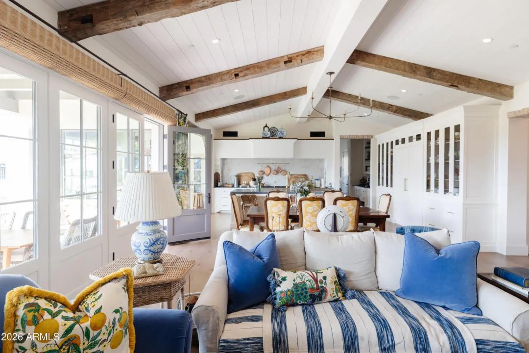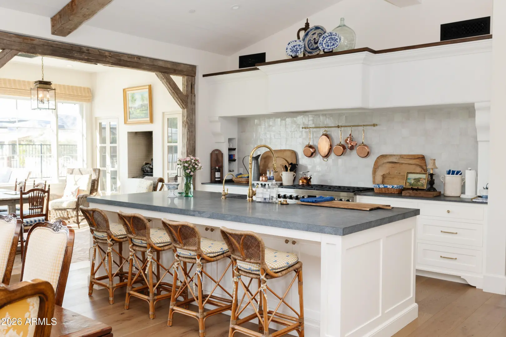Welcome to a one-of-a-kind jewel box nestled in the gated community of Mountain Shadows East. Featuring Reclaimed beams from Quebec, Gas lanterns from New Orleans ,Chicago brick and custom cabinetry by Burdette . The layout is thoughtfully designed with a master suite, guest suite, third bedroom used as a dual office and a music room. Butlers pantry and coffee bar off open concept kitchen , a separate eating area with niche fireplace and stunning Camelback mountain views are just two examples of living well. Outside the charm continues with a welcoming front porch ,Dutch door and fountain . The deep covered back patio looking onto the pool and fire pit and open area is lush. A custom built masterpiece ,this home is a testament to craftsmanship, history and the art of fine living