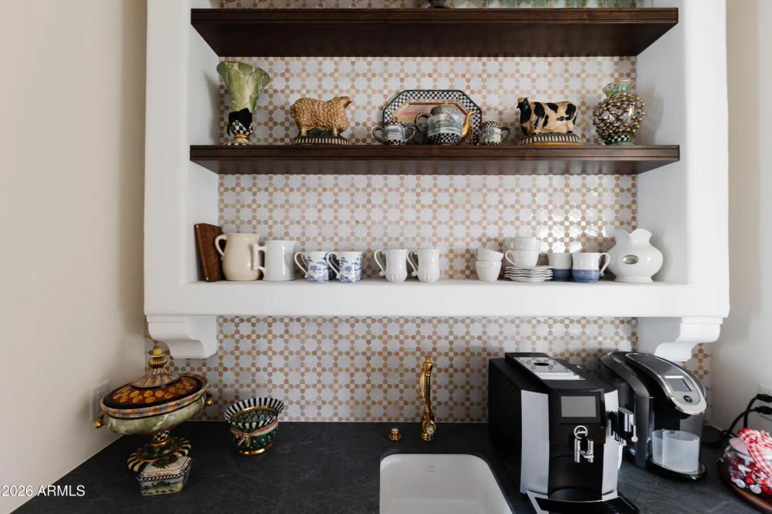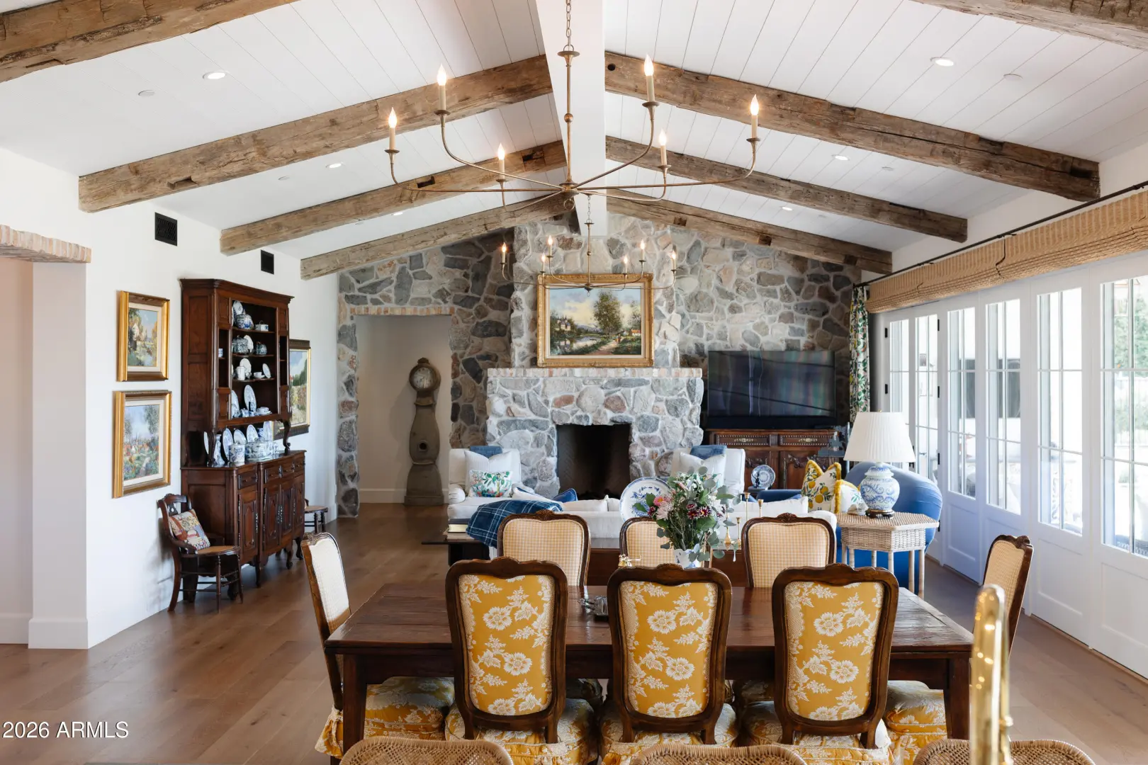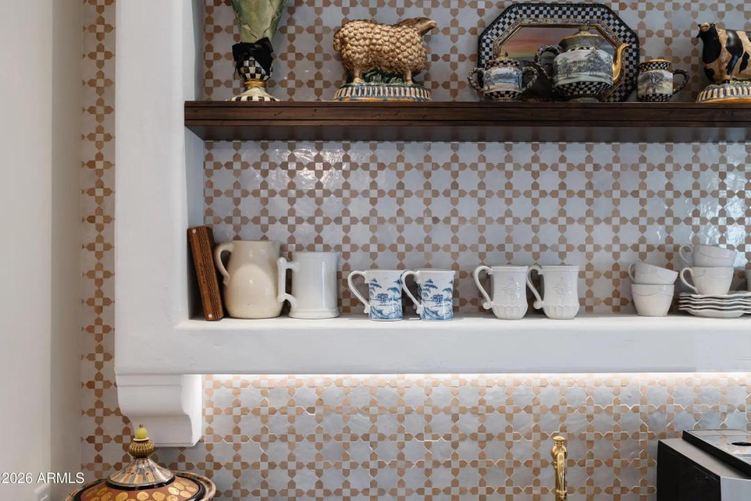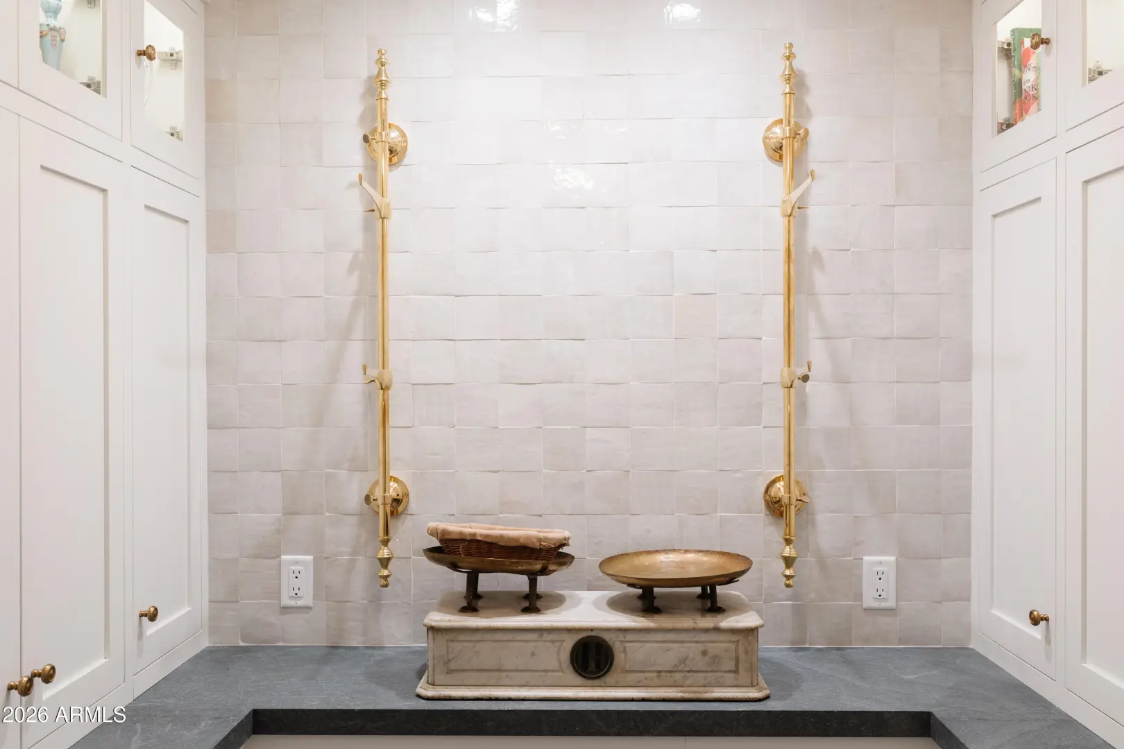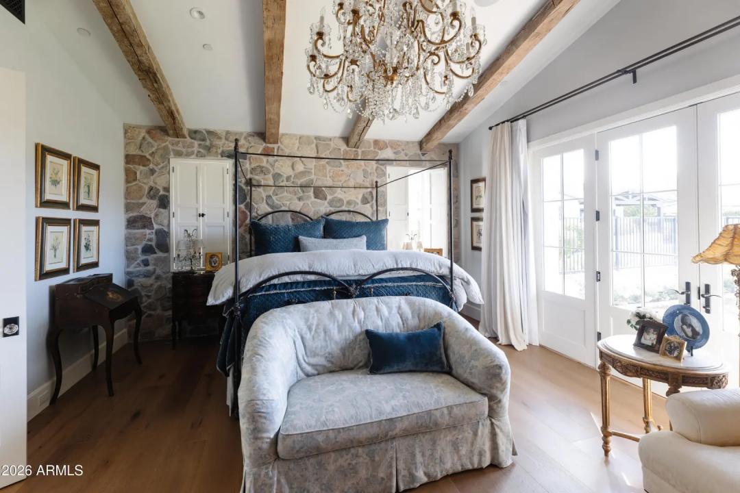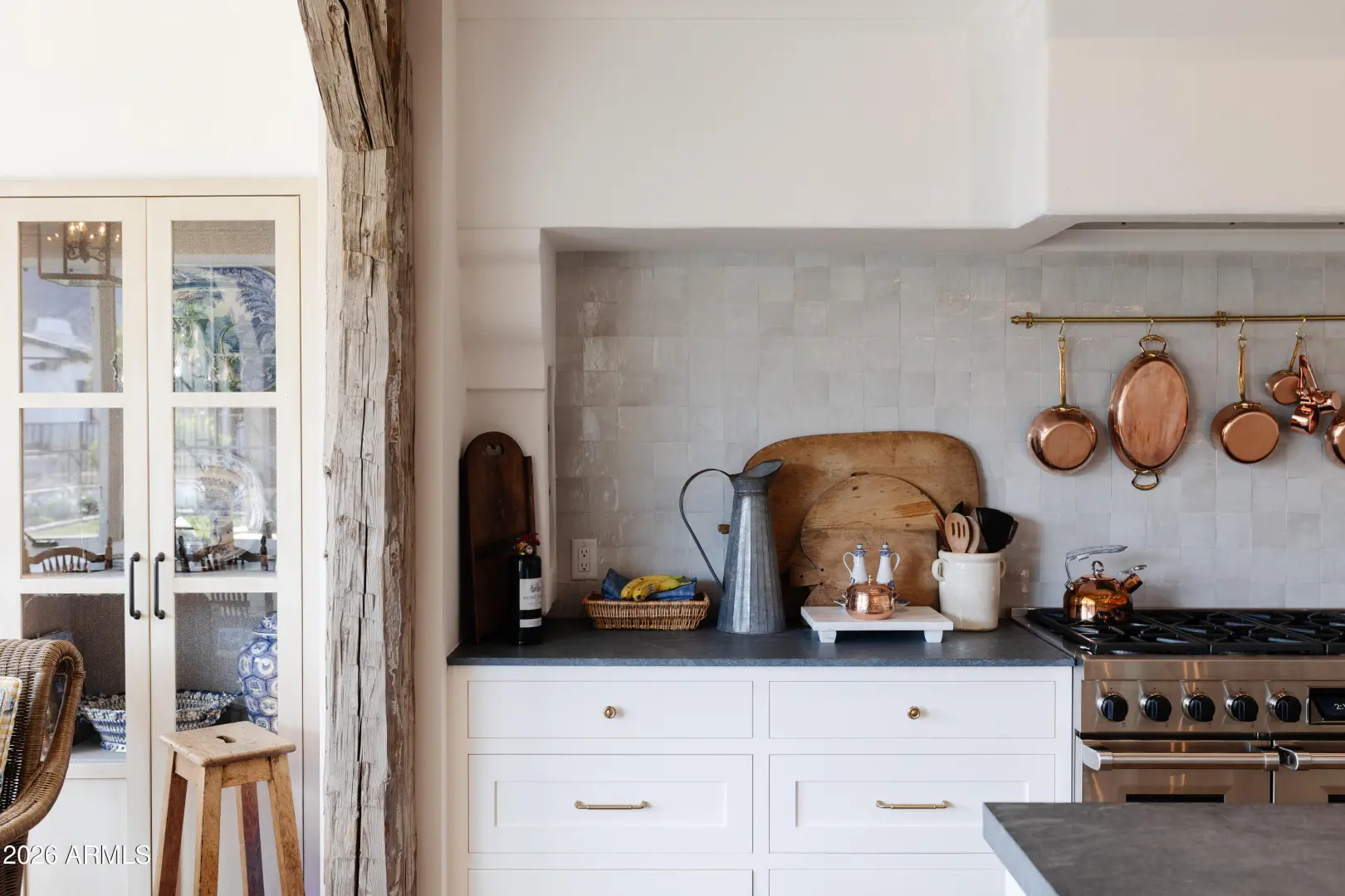 Welcome to a one-of-a-kind jewel box nestled in the gated community of Mountain Shadows East. Featuring Reclaimed beams from Quebec, Gas lanterns from New Orleans ,Chicago brick and custom cabinetry by Burdette . The layout is thoughtfully designed with a master suite, guest suite, third bedroom used as a dual office and a music room. Butlers pantry and coffee bar off open concept kitchen , a separate eating area with niche fireplace and stunning Camelback mountain views are just two examples of living well. Outside the charm continues with a welcoming front porch ,Dutch door and fountain . The deep covered back patio looking onto the pool and fire pit and open area is lush. A custom built masterpiece ,this home is a testament to craftsmanship, history and the art of fine living