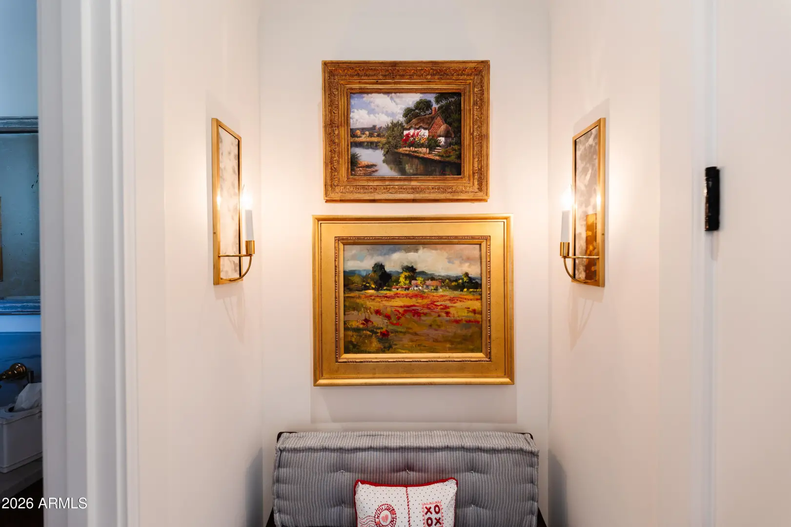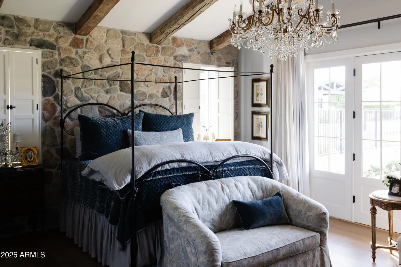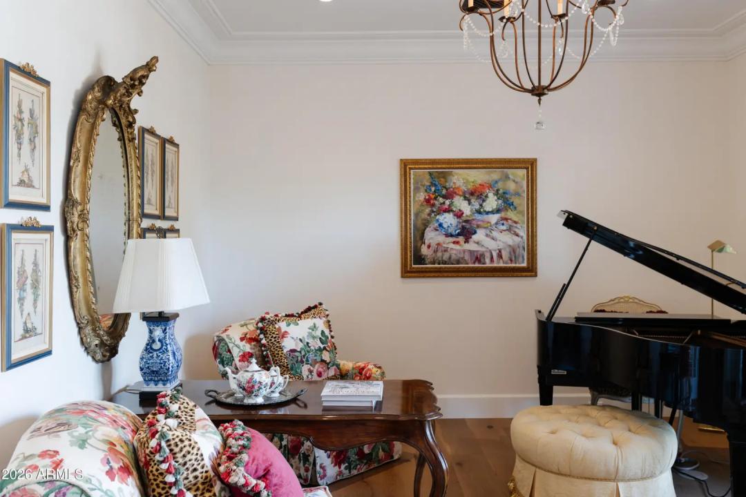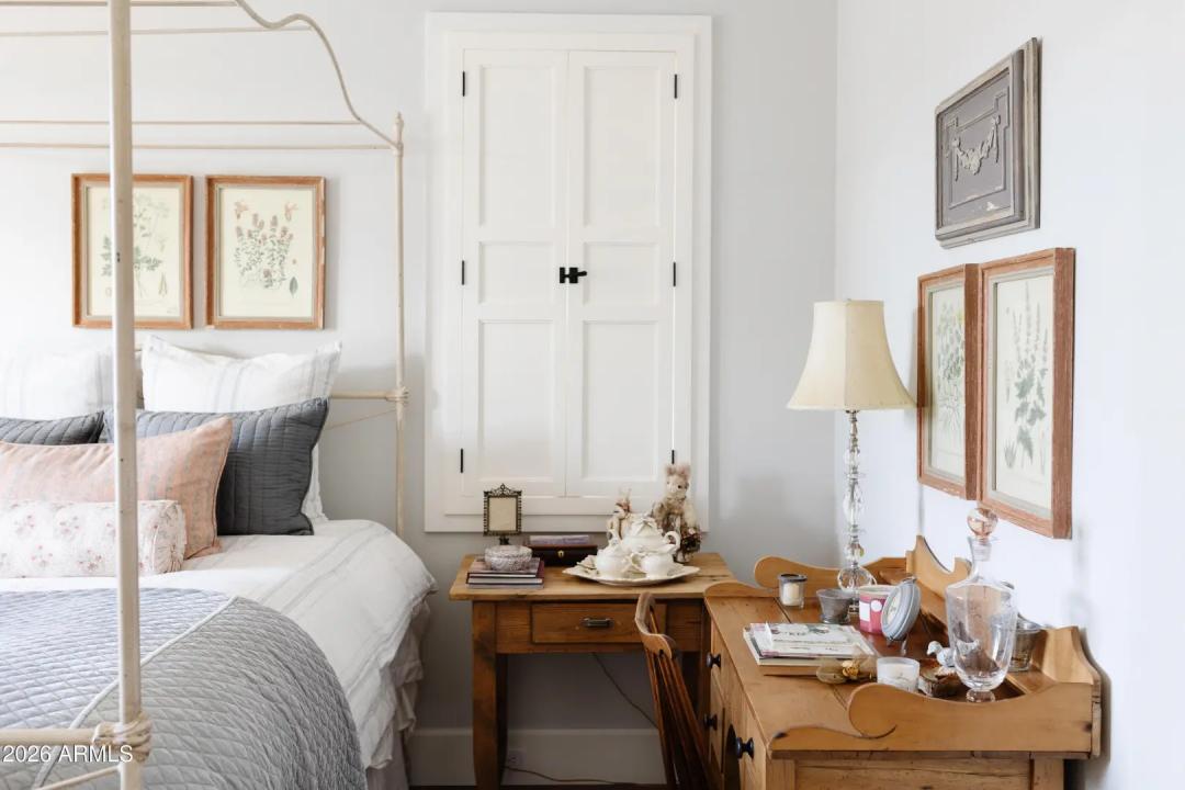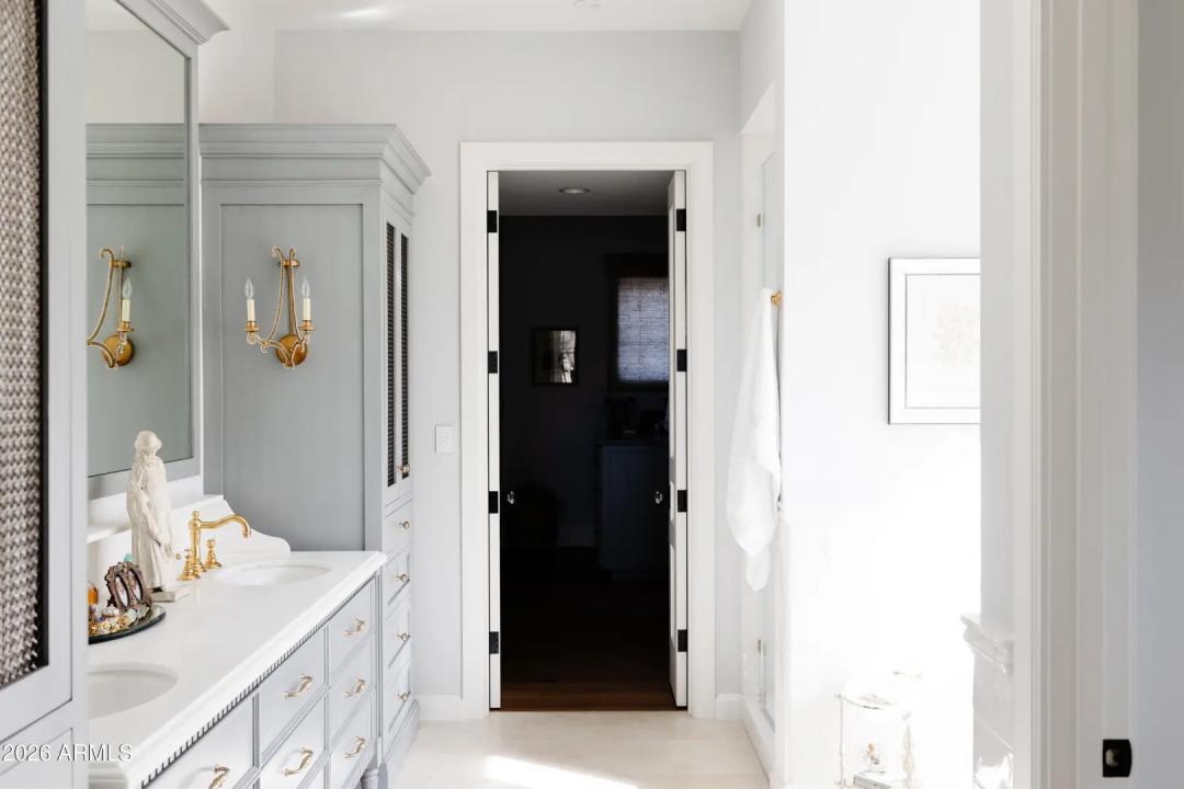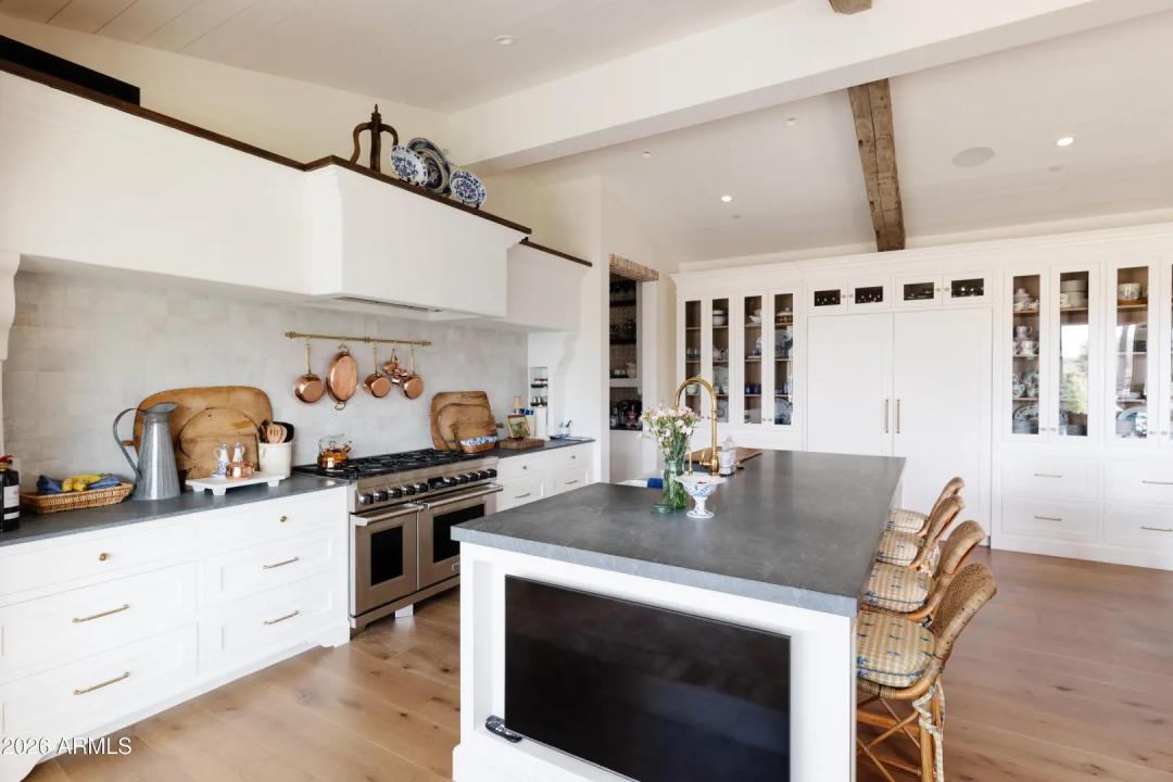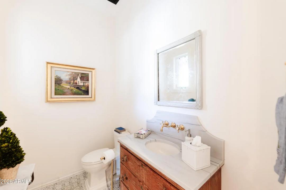 Welcome to a one-of-a-kind jewel box nestled in the gated community of Mountain Shadows East. Featuring Reclaimed beams from Quebec, Gas lanterns from New Orleans ,Chicago brick and custom cabinetry by Burdette . The layout is thoughtfully designed with a master suite, guest suite, third bedroom used as a dual office and a music room. Butlers pantry and coffee bar off open concept kitchen , a separate eating area with niche fireplace and stunning Camelback mountain views are just two examples of living well. Outside the charm continues with a welcoming front porch ,Dutch door and fountain . The deep covered back patio looking onto the pool and fire pit and open area is lush. A custom built masterpiece ,this home is a testament to craftsmanship, history and the art of fine living
