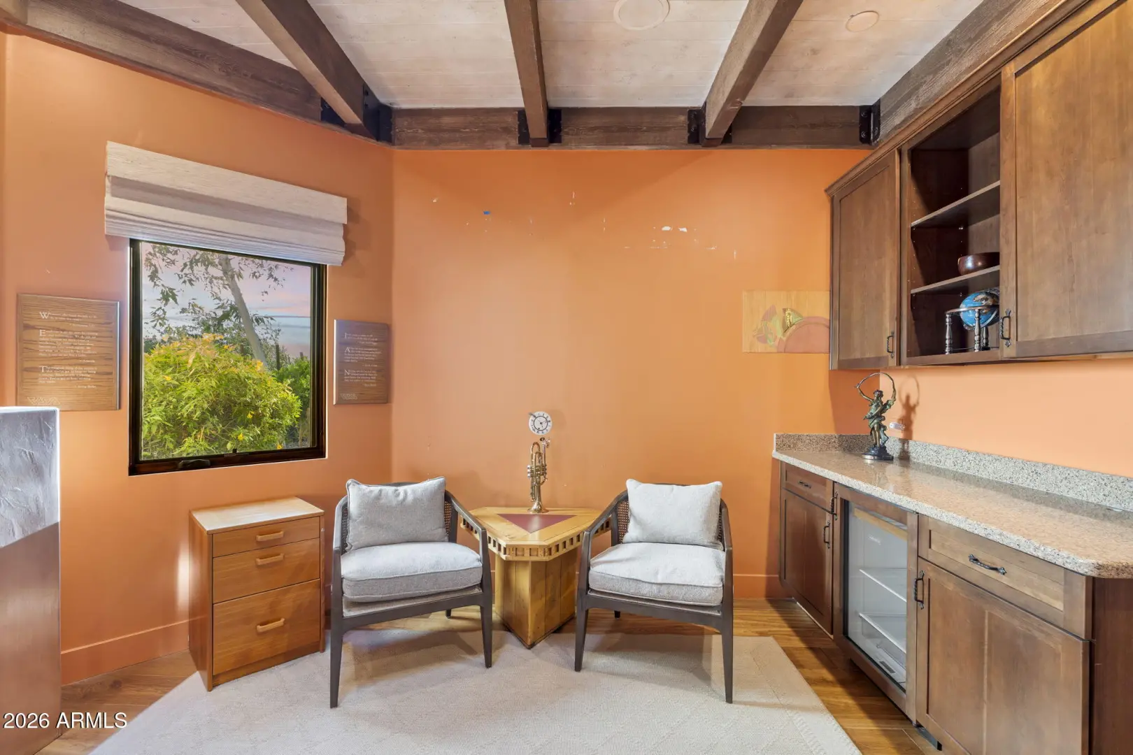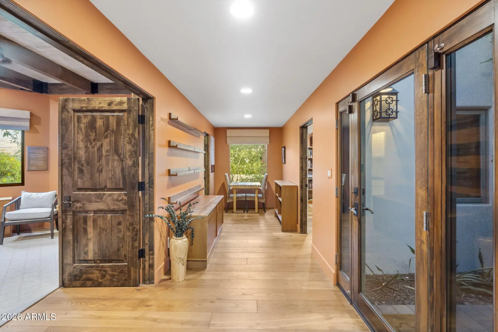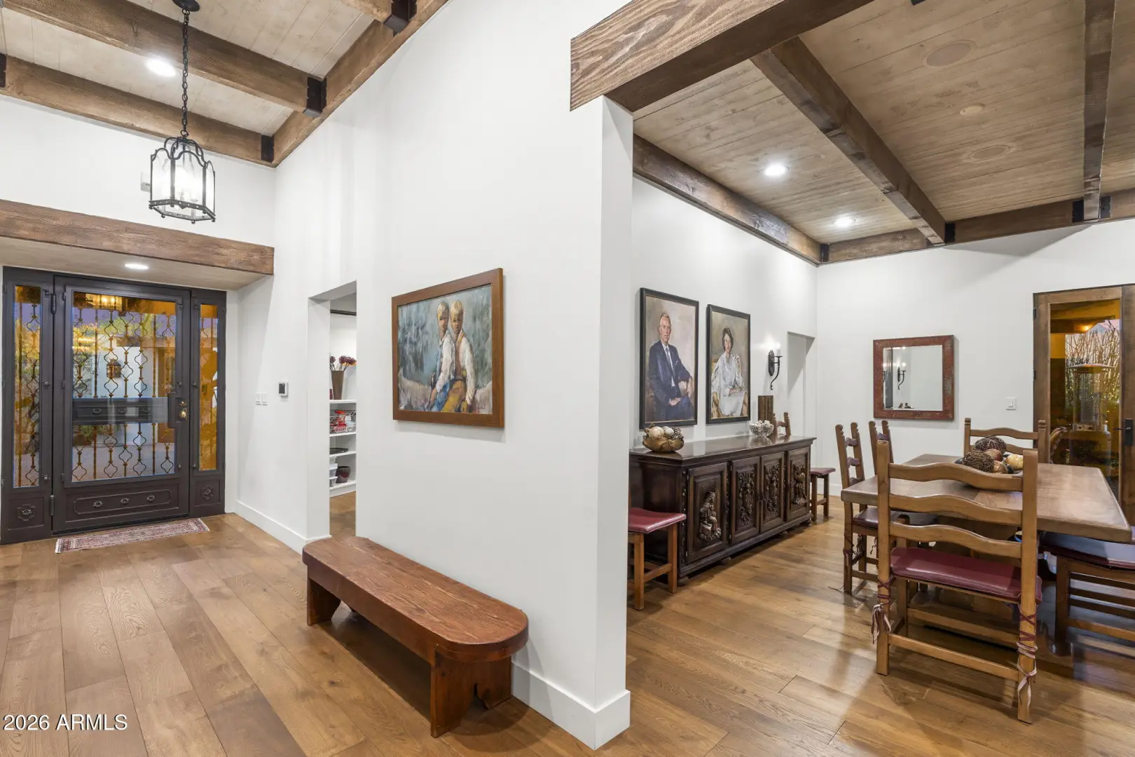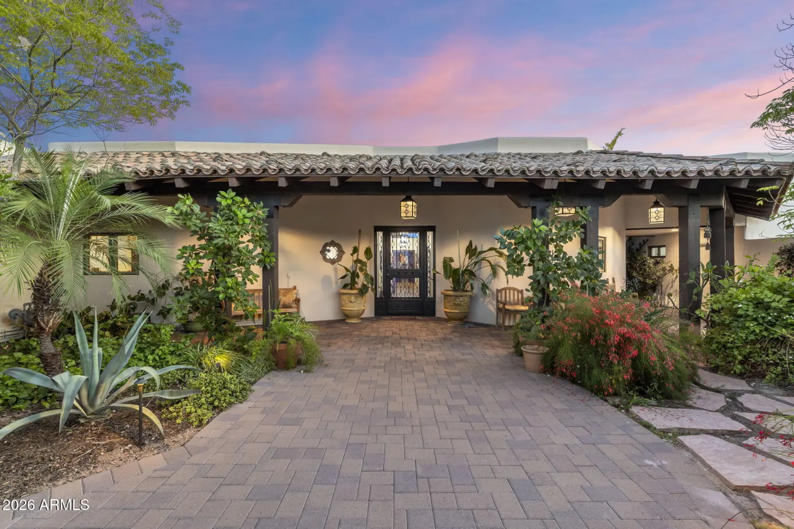 BEAUTIFUL PARADISE VALLEY HOME LOCATED ON A CUL DE SAC AND ORIGINALLY CREATED BY RENOWN ARCHITECT BENNIE GONZALES AND UPDATED THE PAST FEW YEARS. CUSTOM GATE IN ENTRYWAY. SELLER RECENTLY SPENT IN 2021 ALMOST 200K WITH CUSTOM FENCING THROUGHOUT SURROUNDING BACKYARD. THE PROPERTY ALSO HAS A 200 YEAR OLD BOLIVIAN HAND CARVED WOOD GATES INTO THE PRIVATE ENTRY. BEAUTIFULLY DESIGNED KITCHEN HAS PRIVATE BUTLER PANTRY, STAINLESS STEEL WOLF APPLIANCES INCLUDING GAS STOVE AND DOUBLE OVEN PLUS QUARTZ ISLAND THAT SEATS 6. FAMILY RROM HAS WOOD FLOORING, WOOD CASING FLOORING & HIGH CEILINGS. DEN HAS WOOD FLOORING AND GAS FP. PRIMARY SUITE HAS CUSTOM WOOD DOORS, BEAMED CEILING, GAS FP, MARBLE FLOORING & BEAUTIFUL BATH AREA. PRIVATE COURT AREA AND PRIVATE GATE. PARKING FOR 8-10 CARES IN THE DRIVEWAY.