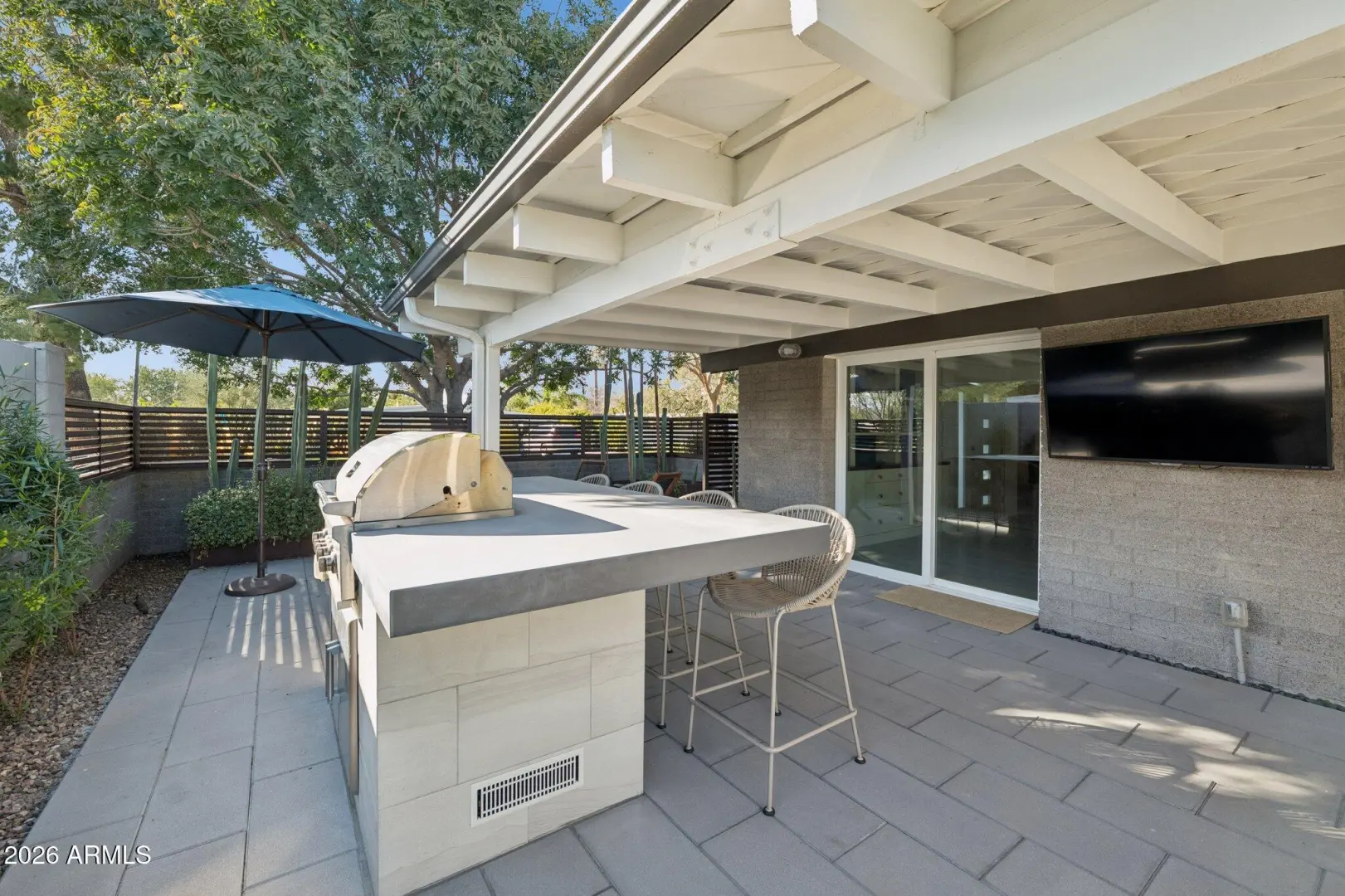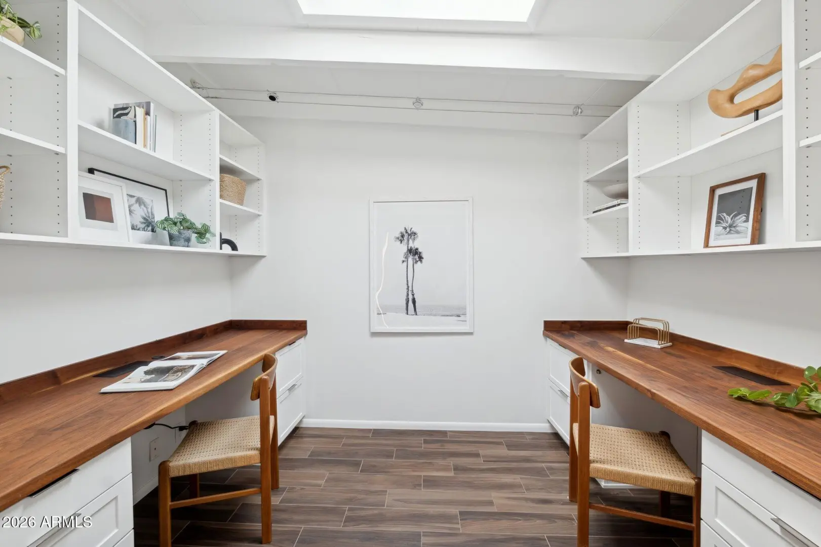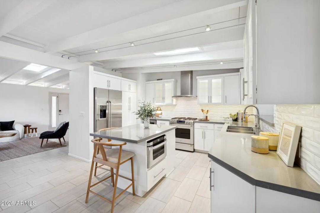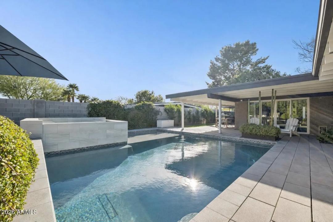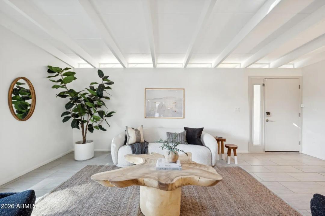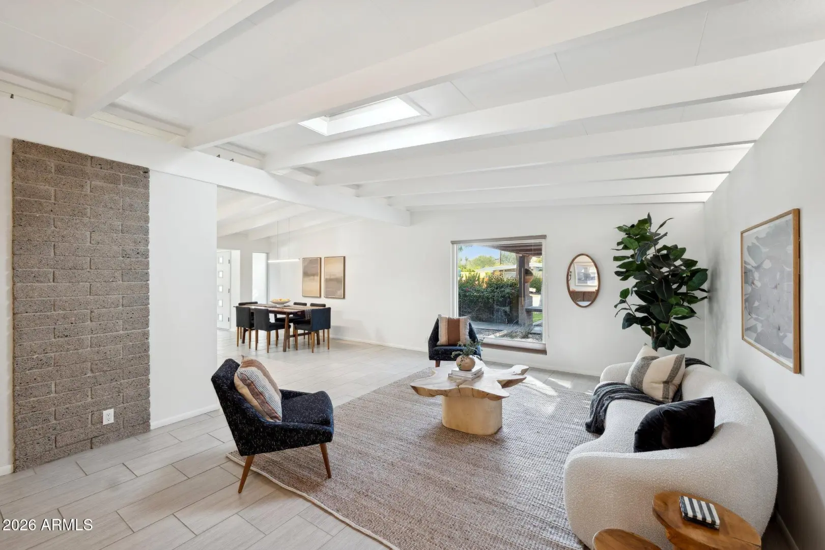 Introducing a truly one-of-a-kind Ralph Haver masterpiece, a rare opportunity in the highly coveted Marlen Grove neighborhood. This exceptional home honors the integrity and spirit of iconic mid-century design while seamlessly integrating a sophisticated, permitted addition that nearly doubles the size of any other Haver home in the area. Thoughtfully expanded by a licensed contractor with full City of Phoenix permitting, the residence marries classic architecture like signature vaulted ceilings, exposed beams, and striking clerestory windows with a highly functional modern floor plan. Inside, you'll find 4 bedrooms, including two with en-suite bathrooms, a dedicated office, two separate living spaces, 3.5 baths, and a resort like backyard.