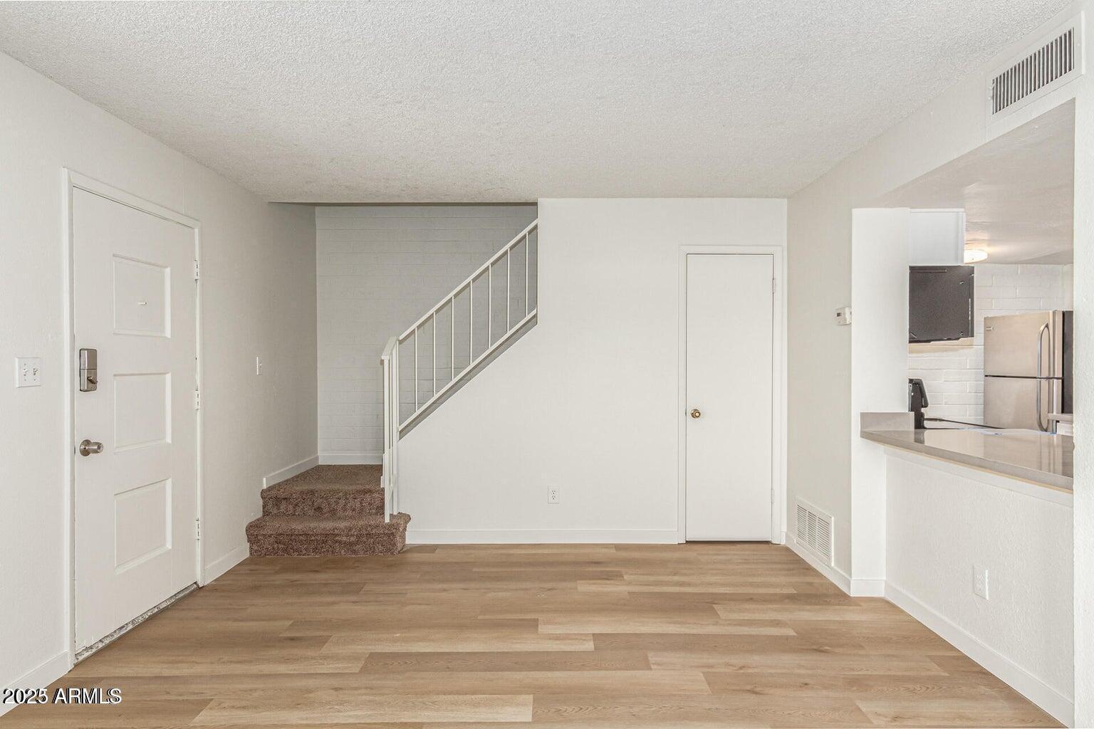 Beautiful remodeled town home nestled in superb location of Mesa Riverview. This home offers 3 bedrooms, 1 full bathroom, an updated kitchen with ss appliances, granite counters, new lVP floors, an updated bath, and new light/plumbing fixtures. Also, home offers an in-unit washer/dryer in separate storage space w/ large private patio space.