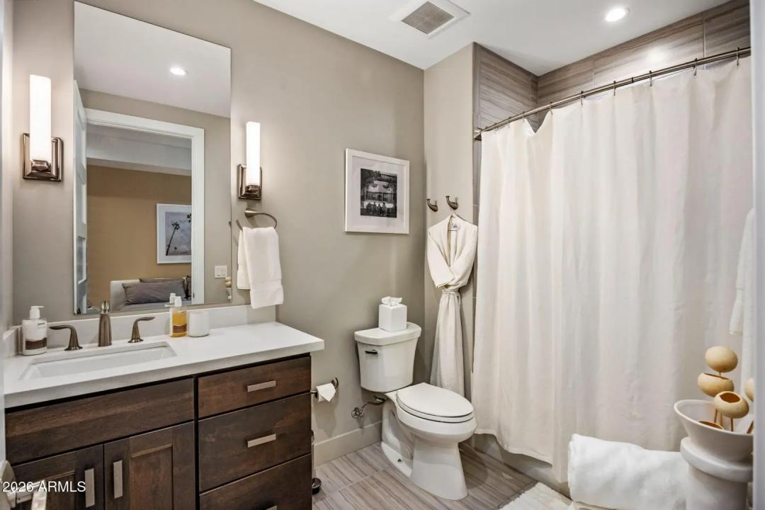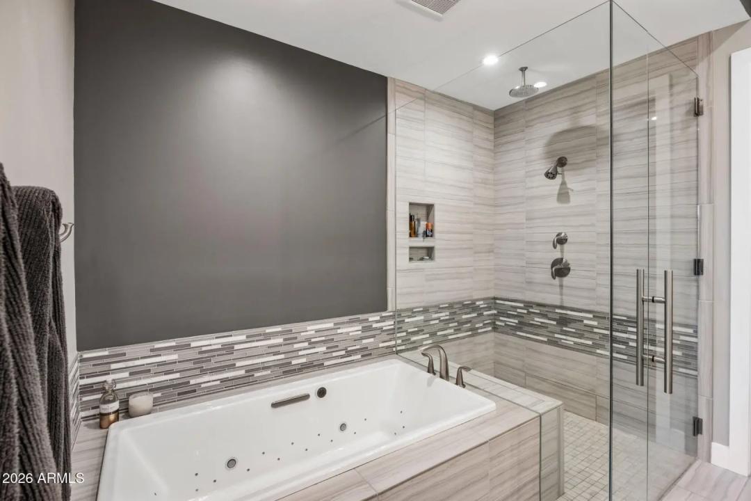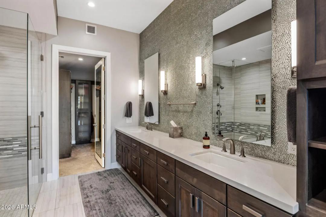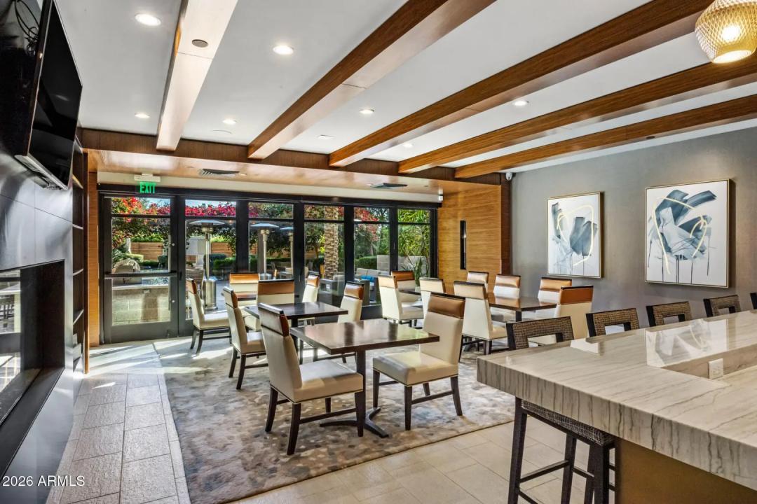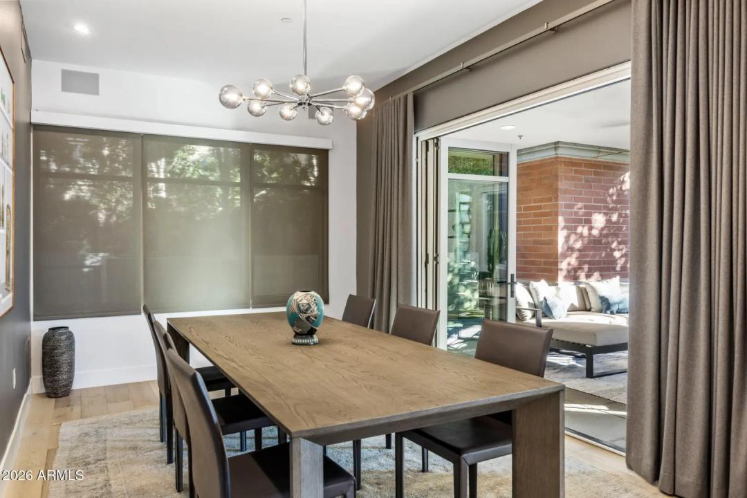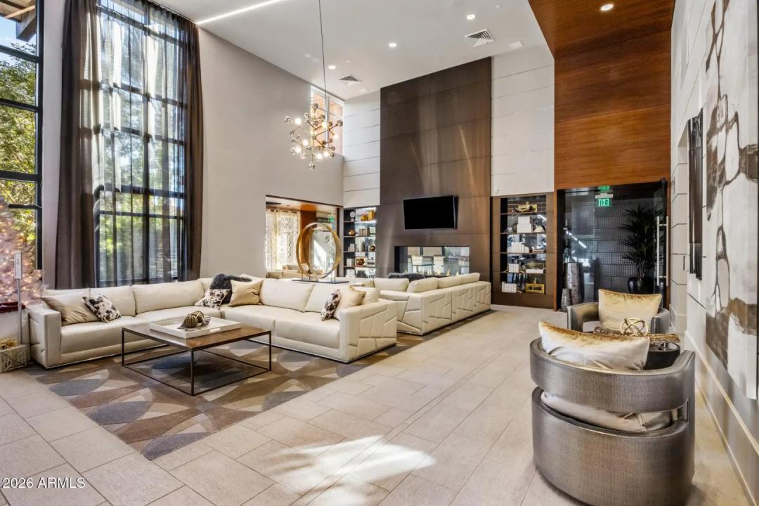 Luxury Living awaits at the exclusive Enclave at Borgata community, perfectly located in walking distance of the best Paradise Valley offers, and complemented by residents-only, resort-style amenities including a fitness center, pool, spa and dog park. Designed for an elevated lock-and-leave lifestyle with true indoor-outdoor ease, this stunning contemporary ground-floor residence offers an expansive open layout with premium finishes throughout. Bright, open-concept living is defined by a sophisticated neutral palette featuring wide-plank wood flooring and designer lighting. The chef's kitchen anchors the home with a dramatic statement backsplash, generous island seating, sleek cabinetry, 90-bottle wine chiller and premium Wolf & SubZero stainless appliances - perfect for effortless