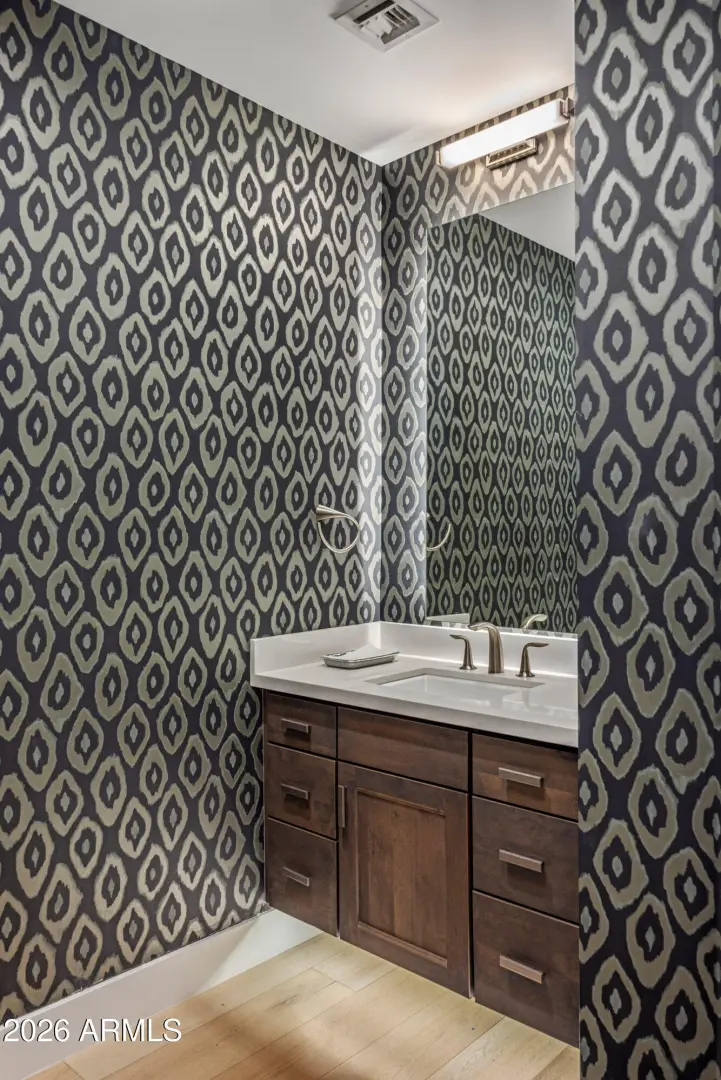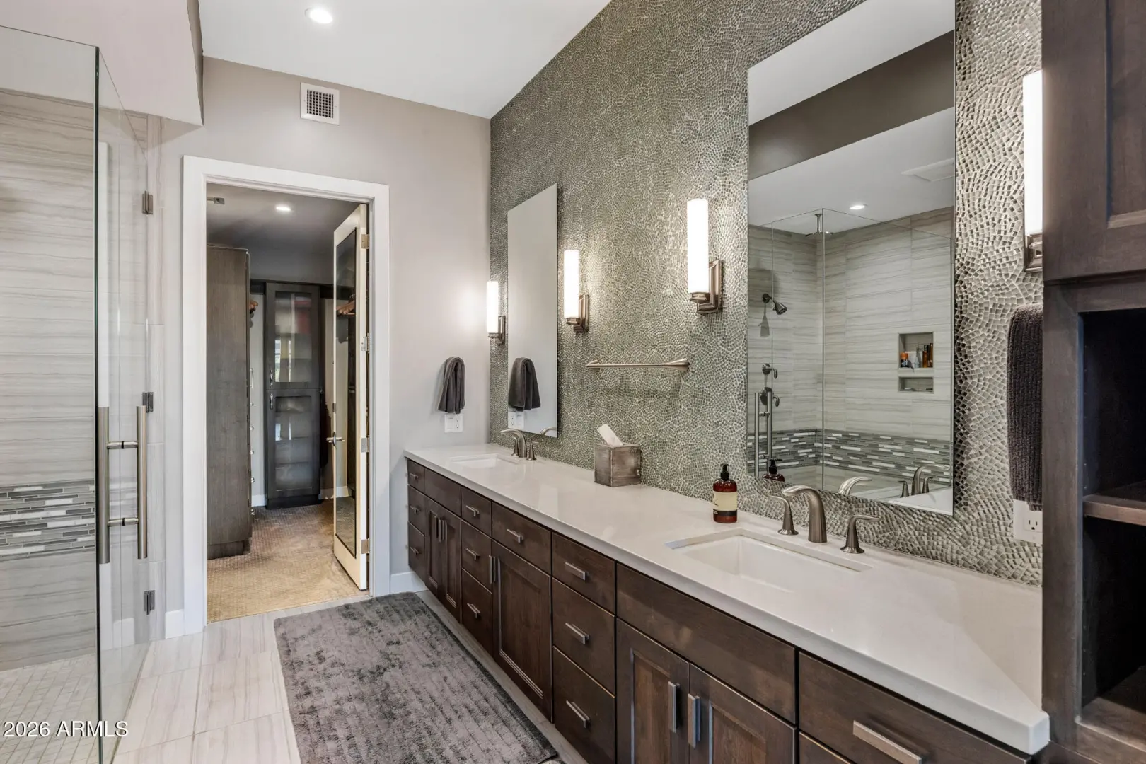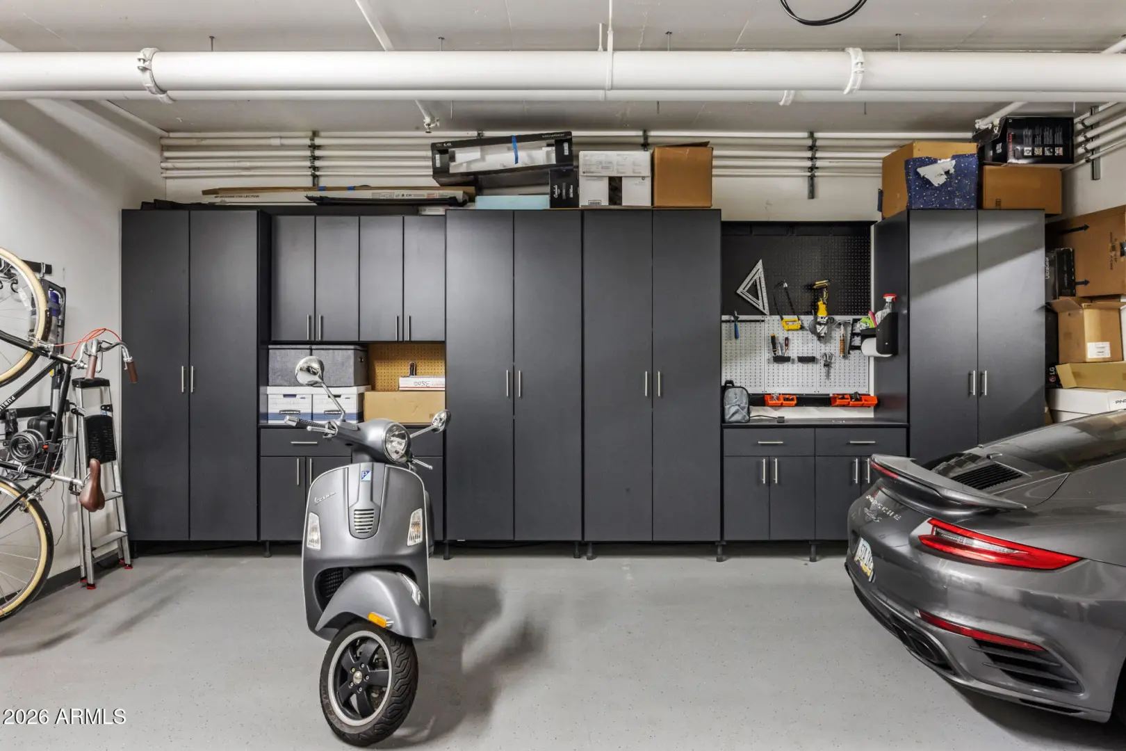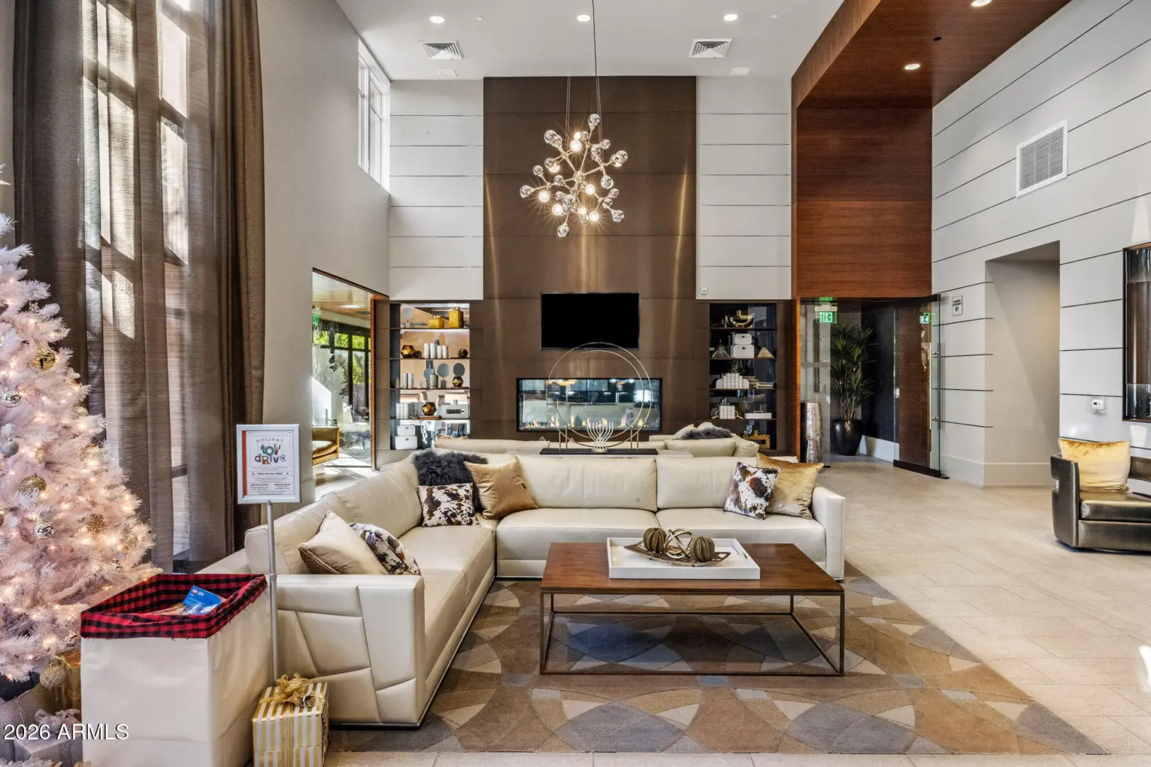 Luxury Living awaits at the exclusive Enclave at Borgata community, perfectly located in walking distance of the best Paradise Valley offers, and complemented by residents-only, resort-style amenities including a fitness center, pool, spa and dog park. Designed for an elevated lock-and-leave lifestyle with true indoor-outdoor ease, this stunning contemporary ground-floor residence offers an expansive open layout with premium finishes throughout. Bright, open-concept living is defined by a sophisticated neutral palette featuring wide-plank wood flooring and designer lighting. The chef's kitchen anchors the home with a dramatic statement backsplash, generous island seating, sleek cabinetry, 90-bottle wine chiller and premium Wolf & SubZero stainless appliances - perfect for effortless