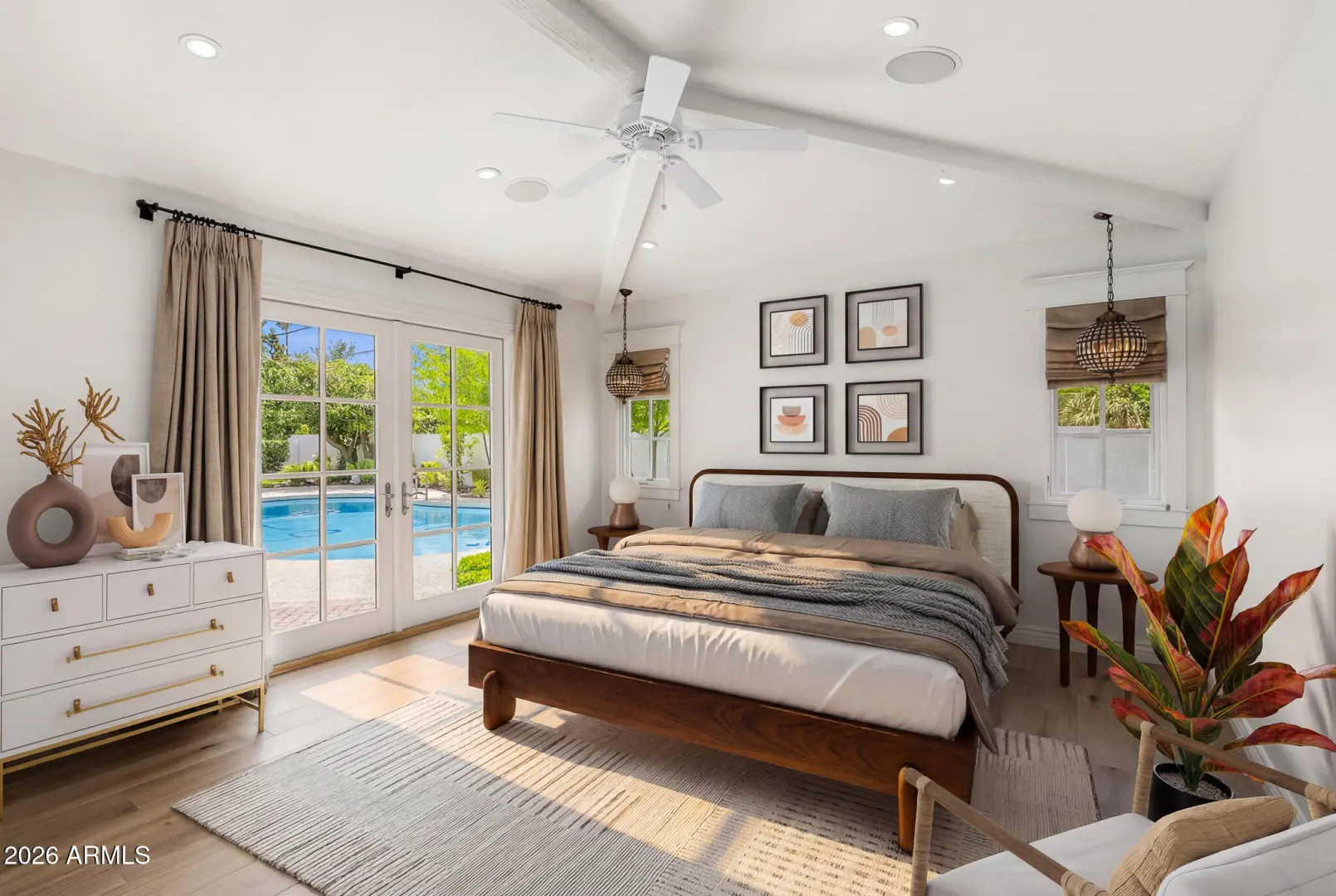 Welcome to your dream home in Arcadia! This beautifully updated 4-bedroom, 3.5-bathroom residence offers 3,317 square feet of thoughtfully designed living space. The open-concept layout features a split floorplan with elegant wood floors, making it perfect for both entertaining and everyday comfort. The gourmet kitchen, complete with crisp white cabinetry and a spacious island, flows seamlessly into the family room and backyard, creating an ideal space for culinary creativity and family gatherings. Step outside to your front porch and enjoy stunning views of Camelback Mountain. The private backyard is an oasis, featuring a sparkling pool, an extended patio, and plenty of room for outdoor dining and lounging. This Arcadia gem is the perfect place for your next home!