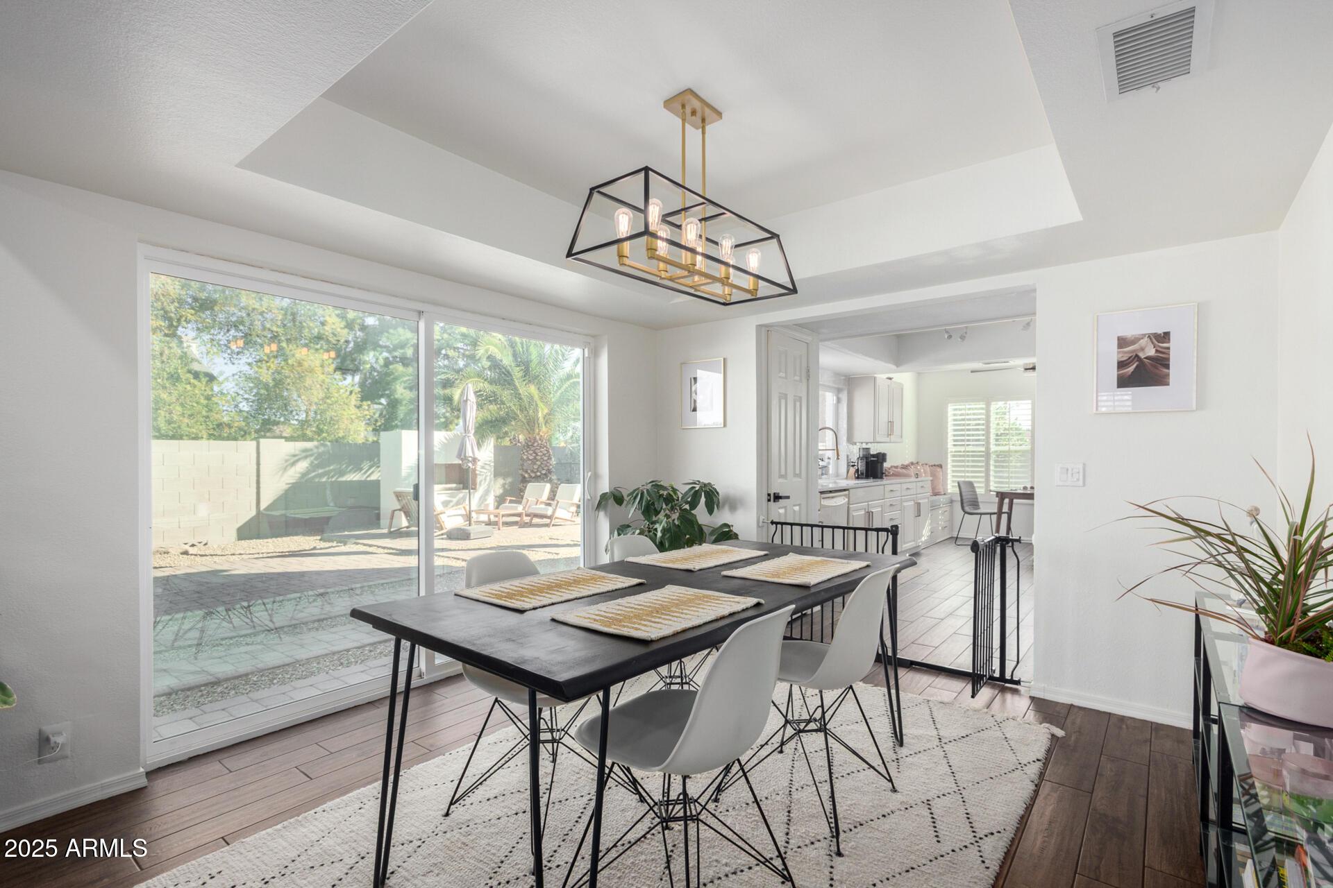 Beautiful large corner lot 3 bedroom, 2.5 bath home in a great location in the heart of Scottsdale. Convenient to major highways, Old Town, Sky Harbor Airport, Spring Training games, shopping and dining, and numerous walking and biking paths. The main level includes a lovely foyer with formal living and dining room, great family room with wood burning fireplace, and vaulted ceilings. The comfortably large kitchen area overlooks the large backyard with fenced pool and grassy area. Recently remodeled features include new HVAC in 2024, dual pane windows, solar panels, walk in shower, and skylight in main downstairs ensuite bathroom, new ceiling fans, electric water heater, and security system.