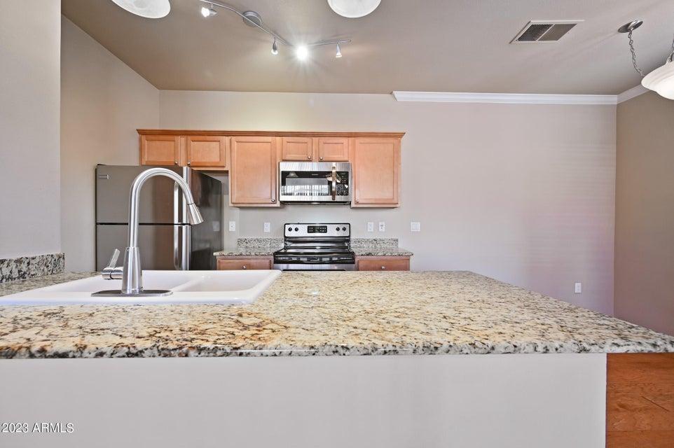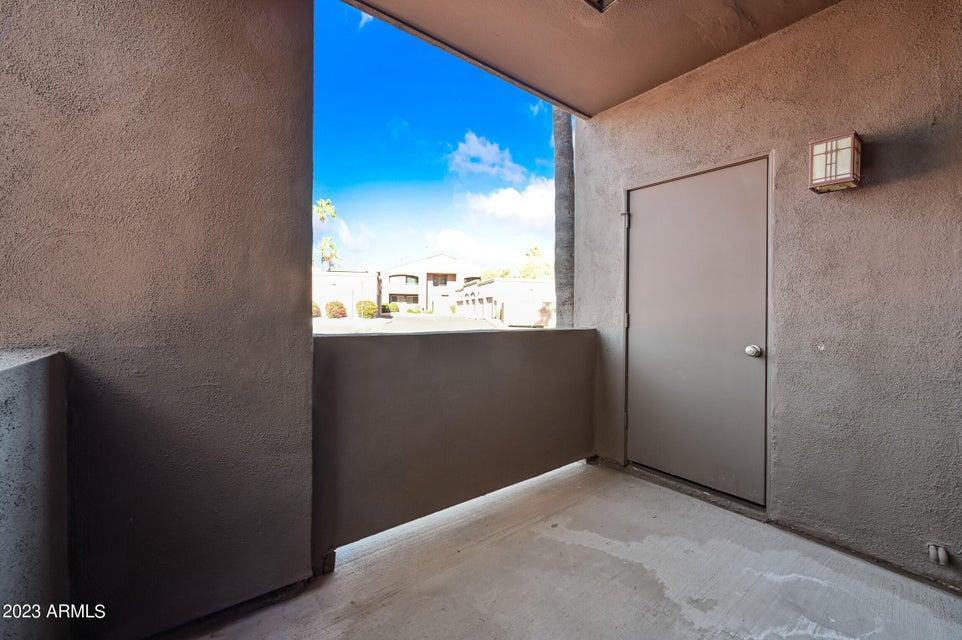 Scottsdale Kierland located year round unfurnished condo at The Plaza Residences! Beautiful updated 1ST FLOOR 1 bedroom 1 bath condo with a one car GARAGE in a resort style gated complex. Tons of open parking close to unit as well! Very quiet location in the community but close to everything. Dining & Living rooms have beautiful upgraded hardwood flooring. Wood burning fireplace & above mantle is setup to attach a flat screen TV. Kitchen features upgraded maple cabinetry, 20'' x 20'' porcelain floor tile, granite counter tops & stainless steel appliances. Bedroom has carpet, ceiling fan & walk in closet. Bathroom has 20'' x 20'' porcelain floor tile, upgraded maple vanity w/ granite counter, & newer tiled walk in shower. Full size washer/dryer! Covered patio. Walk to world class shopping