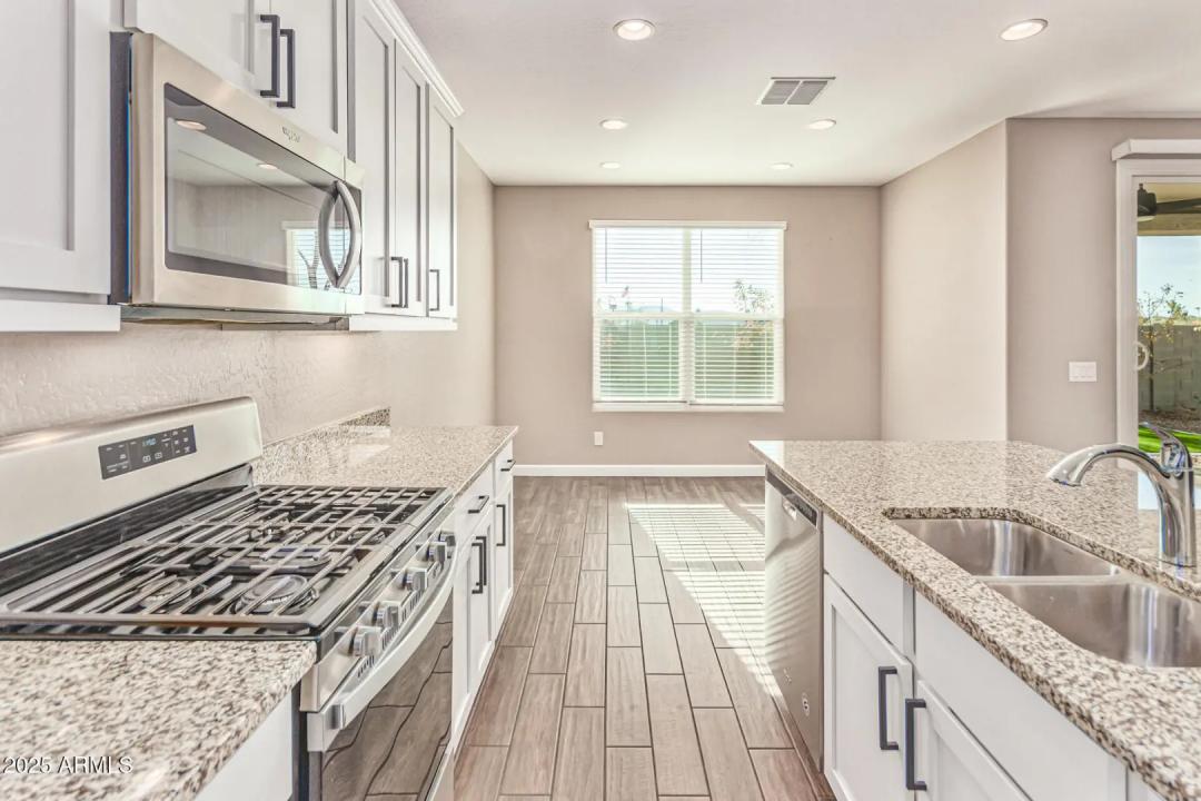 Upgraded in all the right places! This beautiful 4 bed / 2 bath home features wood-like tile flooring throughout, kitchen with white shaker cabinets, granite countertops, island and stainless steel appliances. Open floor plan creates an inviting space while the primary suite is split from the secondary bedrooms. Backyard features artificial turf and large covered patio with no neighbors behind. Great corner lot with split 3 car garage and extended driveway for additional parking. GREAT LOCATION in North Phoenix and close to all freeways. Must see!