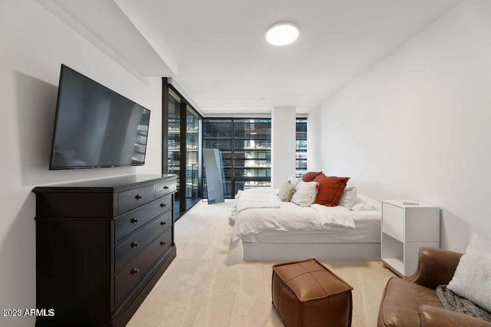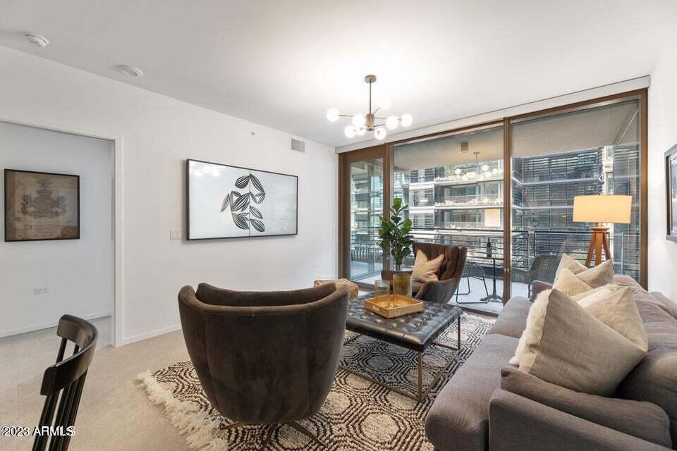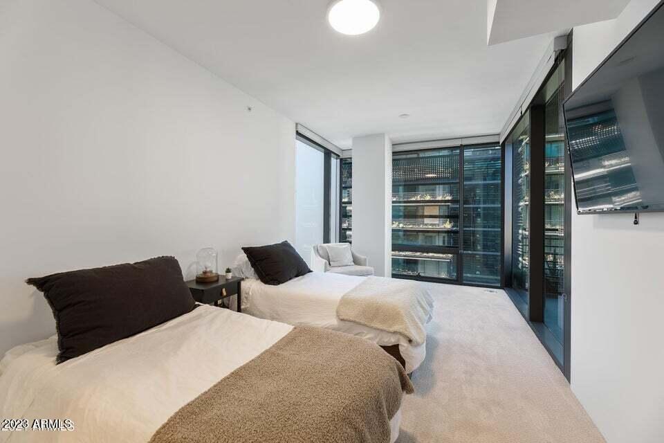 Live elevated at Optima Kierland in this furnished 8th-floor residence with floor-to-ceiling glass and sweeping Scottsdale city-light views. This modern split-bedroom condo features an open great-room layout, gourmet kitchen with European cabinetry, quartz counters, gas cooktop, and integrated appliances. Spacious primary suite offers spa-style bath, dual vanities, and walk-in closet. Enjoy a private terrace for indoor-outdoor living. Resort amenities include rooftop pool & spa, indoor lap pool, fitness center, basketball & pickleball courts, golf simulator, concierge, and secure parking. Walk to Kierland Commons & Scottsdale Quarter dining, shopping, and nightlife. Close to Mayo Clinic, TPC Scottsdale, and Loop 101. Luxury lock-and-leave living in North Scottsdale's premier high-rise