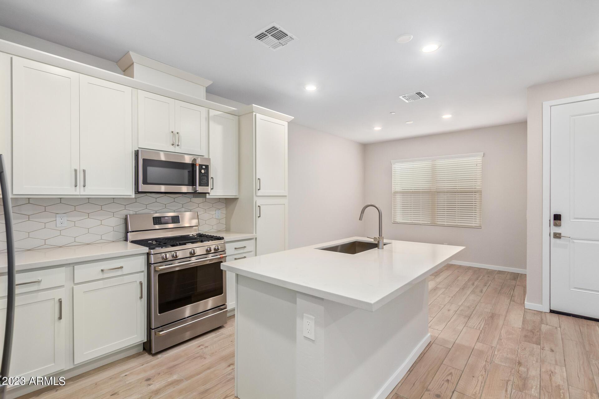 Welcome to Mosaic at Layton Lakes! This is an incredible gated community offering a pool, spa, tennis courts, a lake, a large greenbelt, a Ramada area, children's playgrounds and biking/walking trails. This 3 bed/2.5 bath townhome is just two years old and shows beautifully. Your kitchen has gorgeous white cabinets and white quartz island with breakfast bar, and stainless steel appliances. Powder room downstairs. All bedrooms are upstairs as is your laundry for added convenience! Large master bath shower, and walk-in closet. Beautiful home in an amazing community! Close to the 202 freeway, shopping amazing restaurants, parks, great schools and so much more!