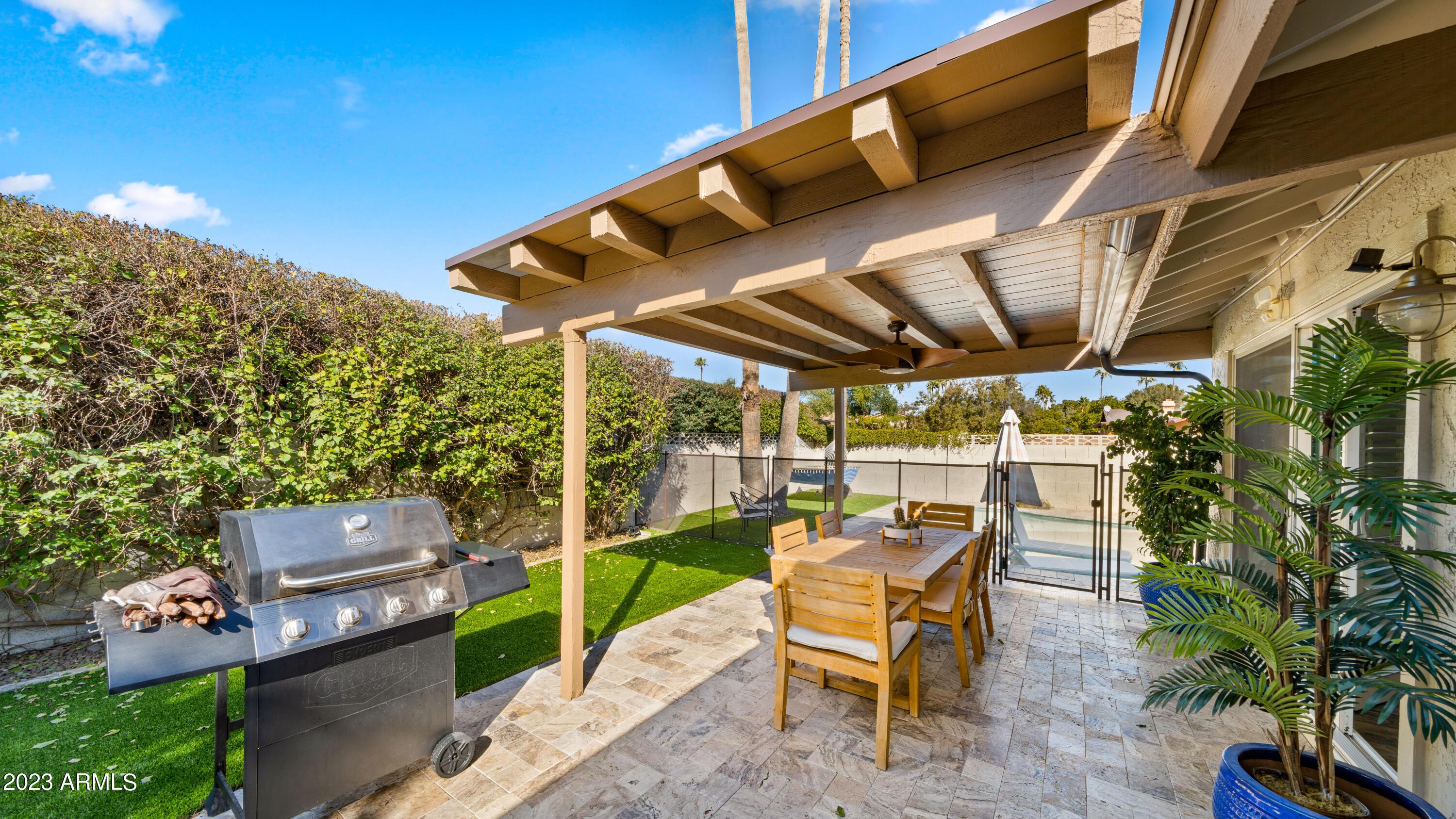 Resort-Style Living in Exclusive McCormick Ranch, Pool & Landscaping Service Included! Light and Bright Coastal Cottage with farm sink, marble counters, wood tile flooring, vaulted ceilings, TVs in every room, brand new pebble sheen pool with Baja shelf and umbrella, hammock, artificial grass & silver travertine. Surrounded by parks, greenbelts, restaurants, shops & centrally located! Walk to Starbucks, Luci's Marketplace, have a drink at the Vig, and work out at the new Esporta Fitness. Minutes away from Old Town, Salt River Fields and all the fun Scottsdale has to offer! You won't ever want to leave!