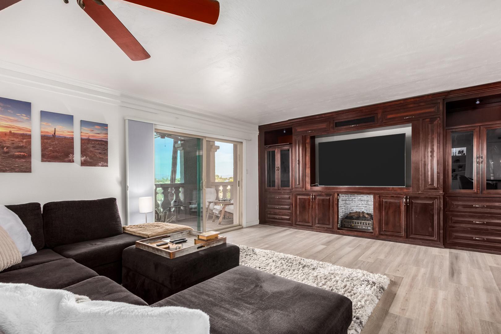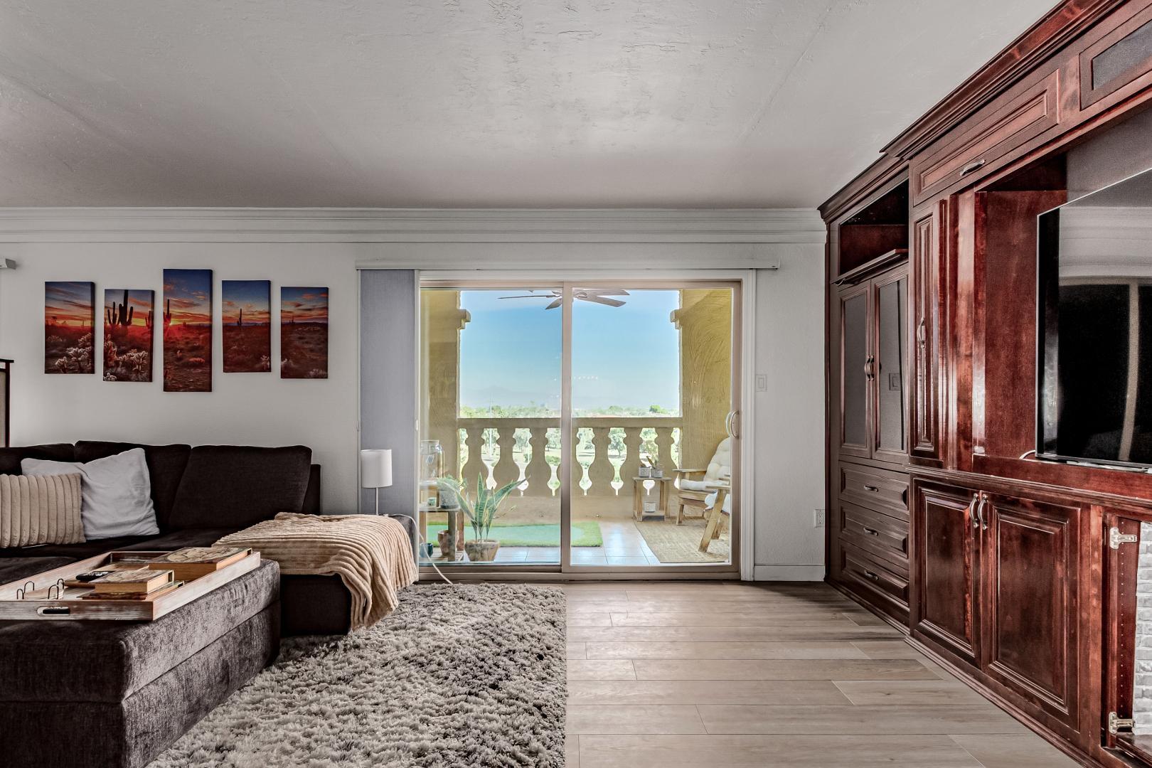 Outstanding split floor plan - 3bed, 3 bath condo fully furnished and ready for long term tenancy. Gourmet kitchen has all roll-out pantry shelves, and every cooking implement and equipment imaginable for luxury living. All linens provided. Home features 5 large smart screen TV's, 2 masters with king beds, 3rd bedroom with a queen bed, a large balcony patio overlooking the verdant private golf course and the beautiful mountains beyond. Furnishings include a lovely formal dining area, bar stools for informal eating, wonderful complete furniture throughout. Enjoy cozy nights watching the glowing fireplace. Enjoy the 3 heated pools, spas, tennis court, gyms, and recreation rooms, art studios and much more. Tenant pays for internet and 'personal electric'. HVAC, water, sewer and all