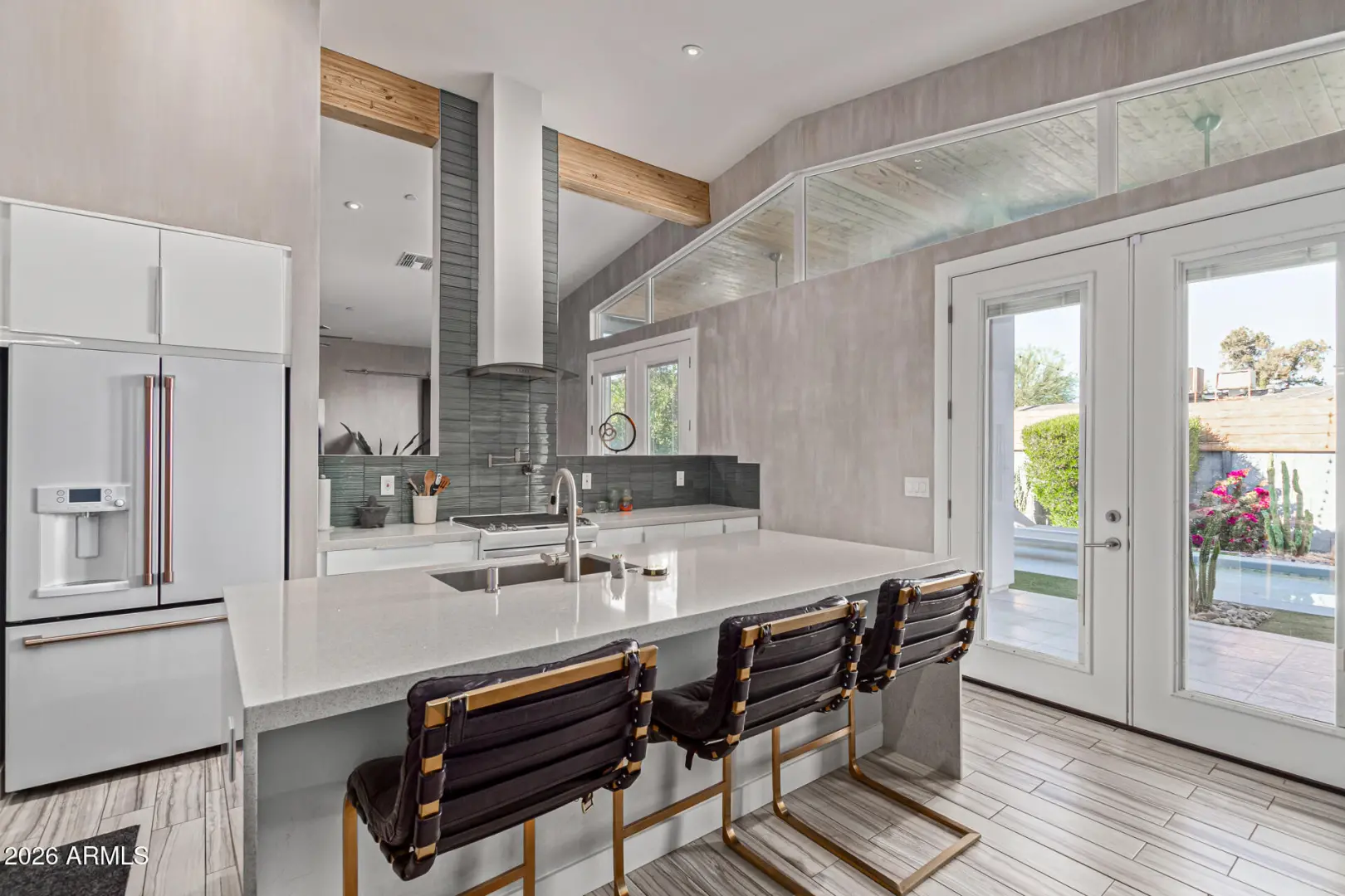 Walk to Chaparral Park and Old Town! Rebuilt from the foundation in 2015 and the HVAC upgraded in 2024, this exquisite property exudes style with vaulted ceilings and beautiful designer added touches throughout. The heart of the home is a gorgeous kitchen, equipped with sleek matching appliances and a large center island with a breakfast bar. The main bedroom offers a true retreat with a cozy sitting area and a chic ensuite boasting dual sinks and a walk-in closet. Built-in cabinets provide ideal laundry storage. A versatile fourth bedroom can effortlessly transform into a den or creative studio. Entertainment continues outside with a covered patio and a refreshing pool. This perfect blend of style, comfort, and functionality is an opportunity not to be missed! Make it yours today.