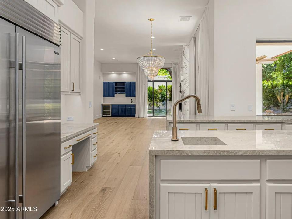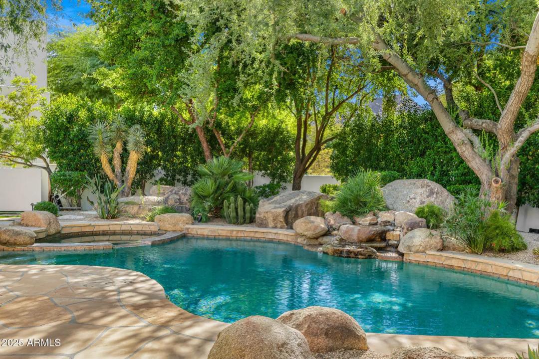 Welcome to the esteemed gated community of Merrill Cantatierra in the heart of Paradise Valley. This home will draw you in from the moment you step inside with a desirable open floor-plan featuring high ceilings, an oversized great room, living room, wet bar, formal dining, formal office/library and a chef's kitchen. With stunning new wood floors throughout, and two show stopping stone fireplaces, this sophisticated, modern home is perfect for everyone. The updated kitchen boasts a gorgeous quartz waterfall island, new appliances and fantastic views out to the private resort style backyard. This primary suite is the star of the show with the spa-like bathroom that invites you in. The private backyard embodies superb resort living with the following amenities- putting green, tranquil pool,