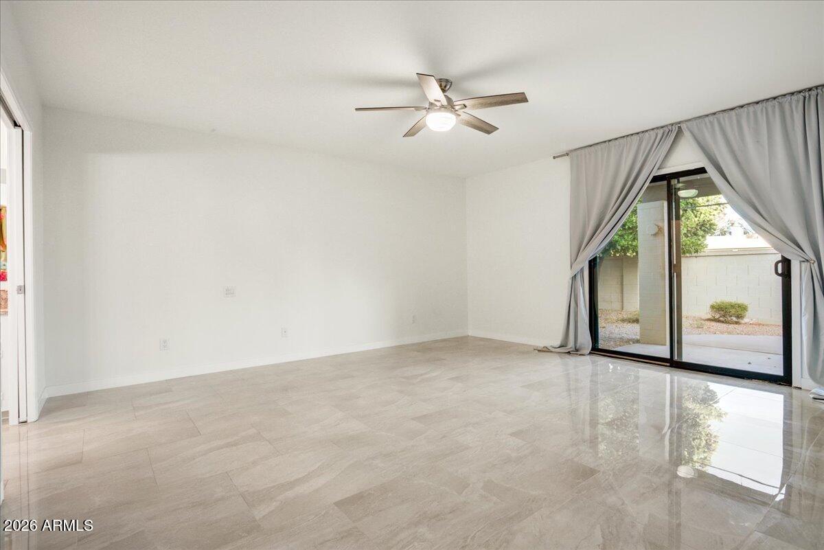 Welcome to this beautifully maintained single-level home in the highly desirable McCormick Ranch community. Great curb appeal and an inviting layout, this property offers both comfort and convenience. Inside, you'll find open living room with bright and airy living area with 9+ ft ceilings and abundant natural light. Newly remodel kitchen includes ample cabinet space, stainless steel appliances and functional layout ideal for cooking and entertaining. The primary suite is thoughtfully designed with a split floor plan for added privacy. It features a large bedroom, bathroom with a separate tub and shower, and a dual-sink vanity. The two additional bedrooms are generously sized and share a well-appointed full bathroom. Step outside to a private backyard?perfect for relaxing. Located near
