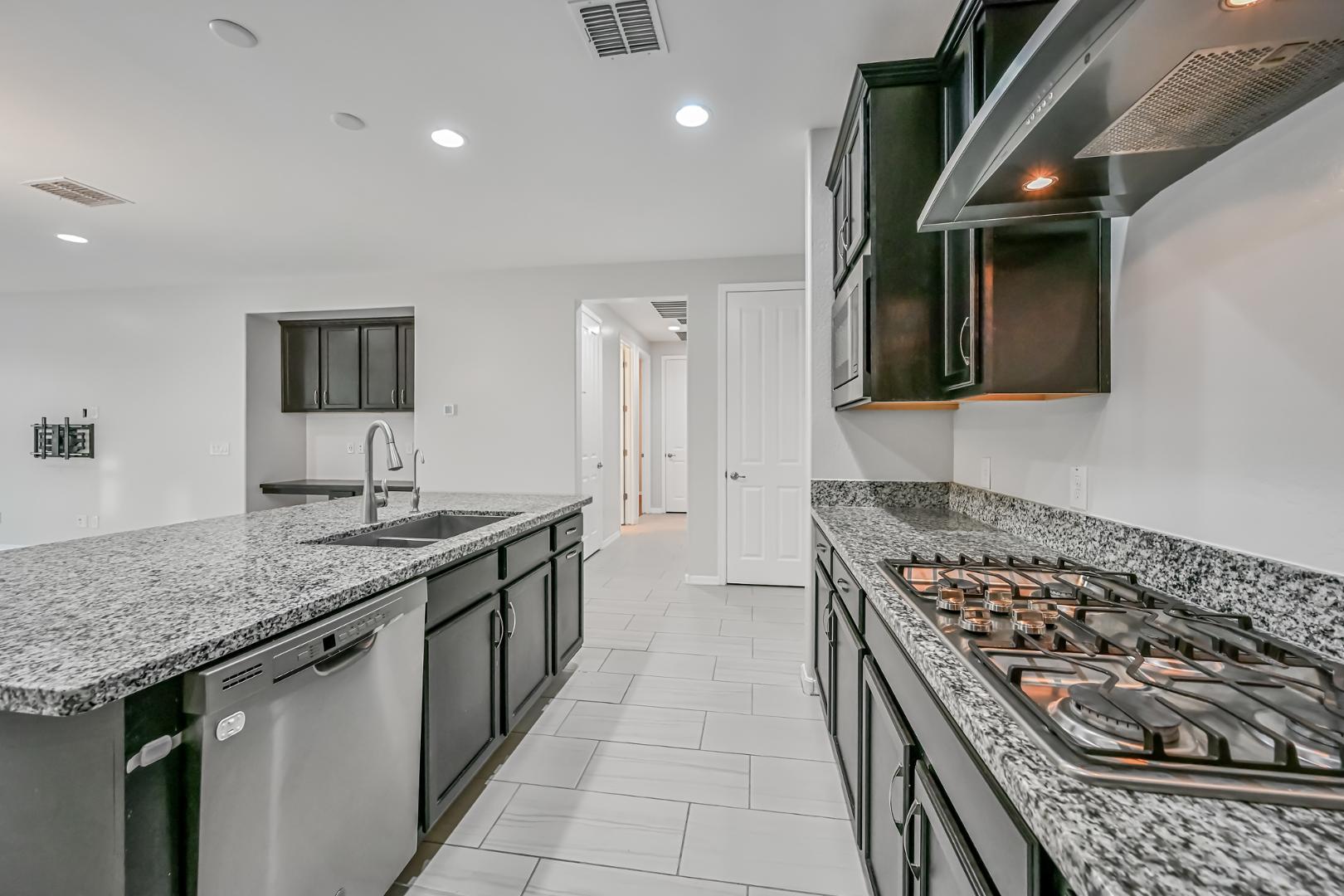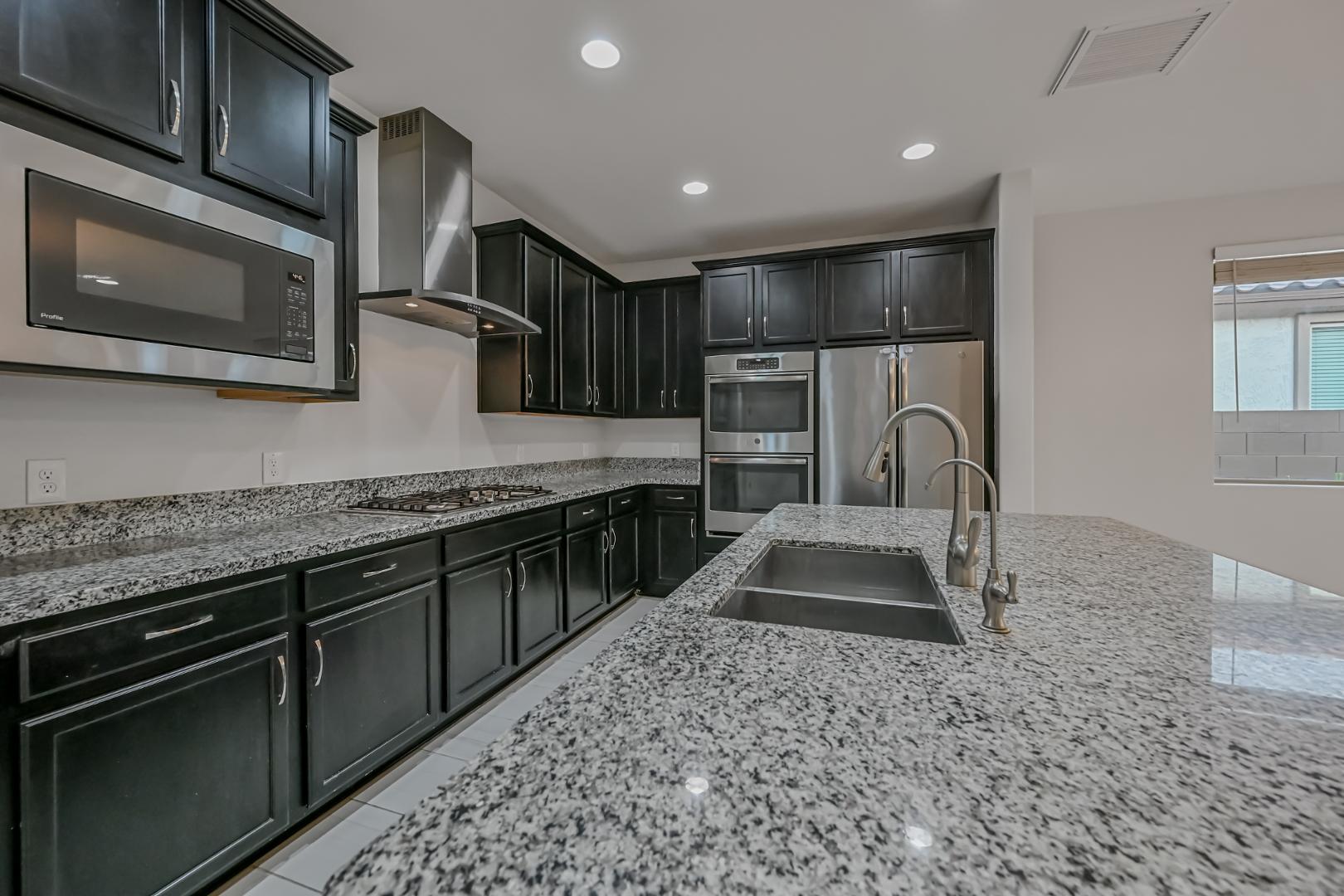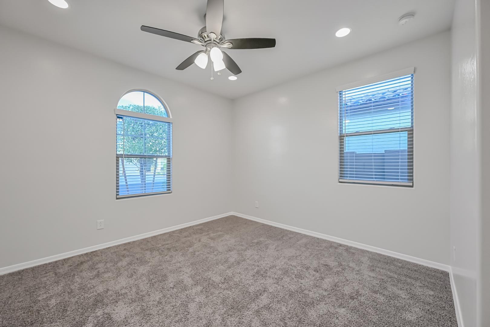 SOLAR POWERED HOME in the desirable Peoria community The Meadows! Welcome to your new home! This lovely 2019 build home features an open and bright floor plan. Fantastic kitchen with SS Appliances, 2 pantries & GAS cooking.....a Home Chefs Dream! Primary suite is spacious w/ walk-in closet & a bathroom that features separate shower, garden tub & double vanities. 2 other nice size secondary bedrooms & full bath. Plus a 4th bedroom w/ private bath! Large living area w/ built-in desk. And a separate den perfect for a home office! Private backyard w/ artificial turf and beautiful landscaping. 2 car garage & laundry w/ washer/dryer included. Community Center, pool & park nearby! No pets please. Tour today!
