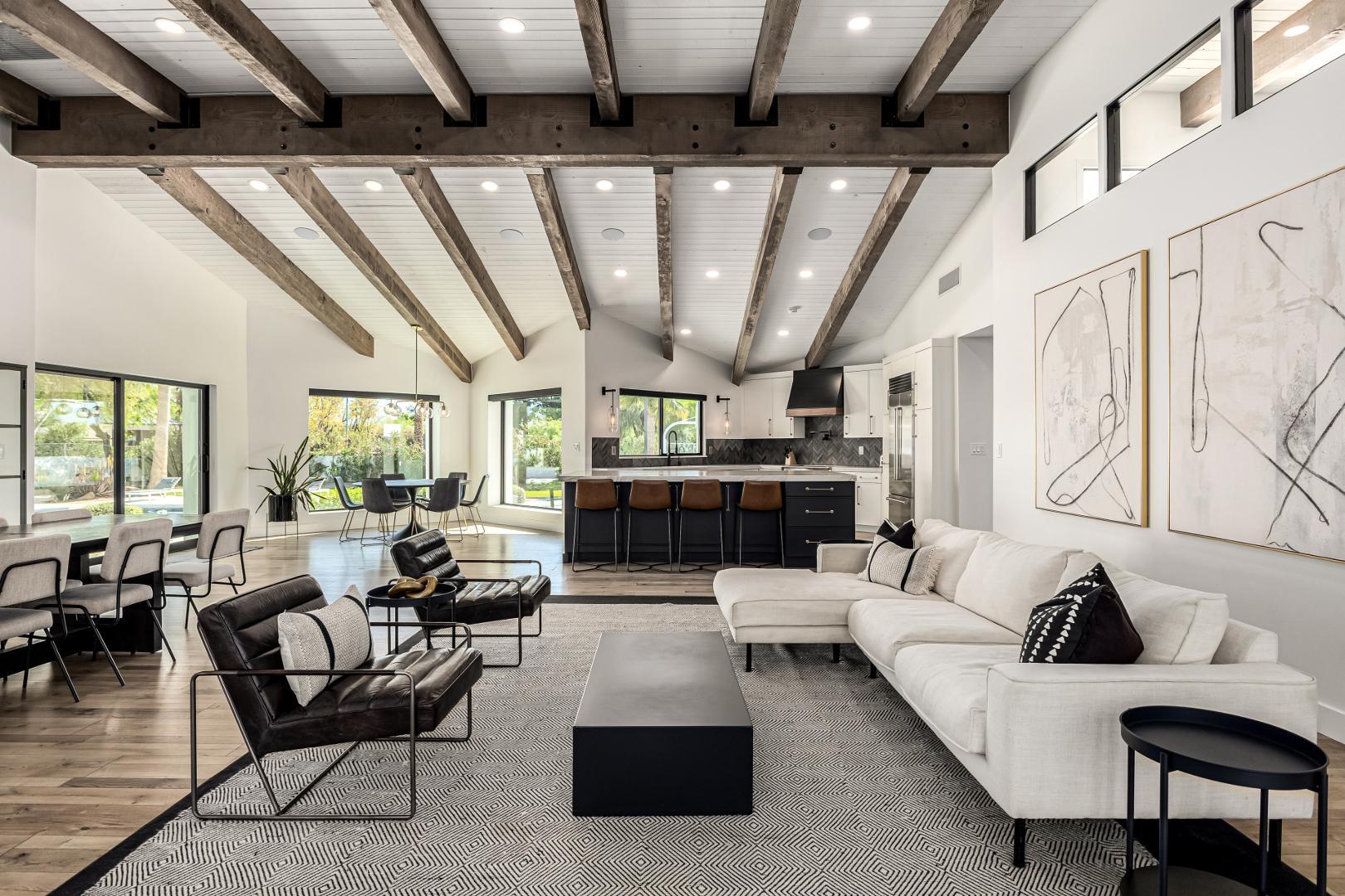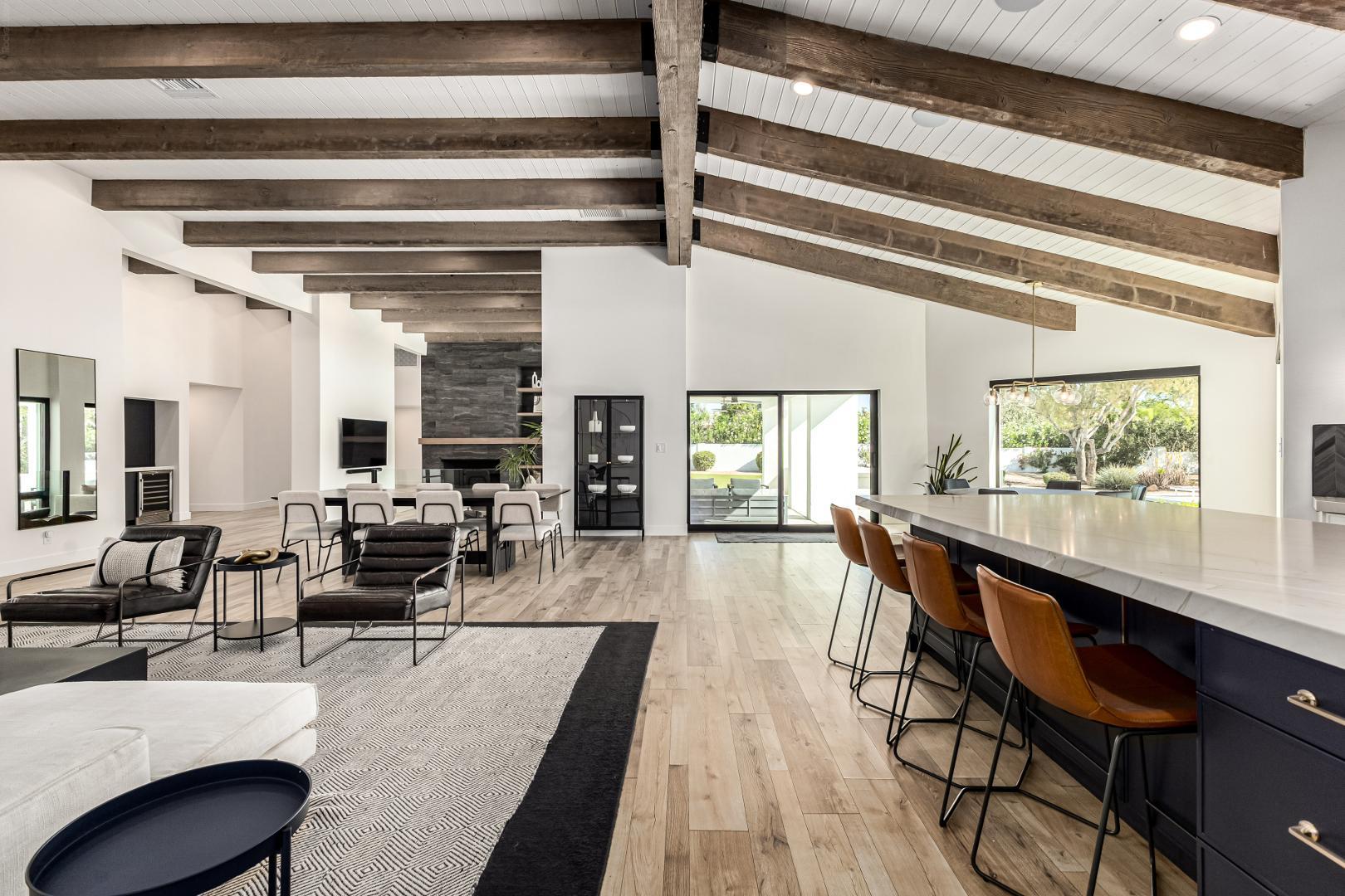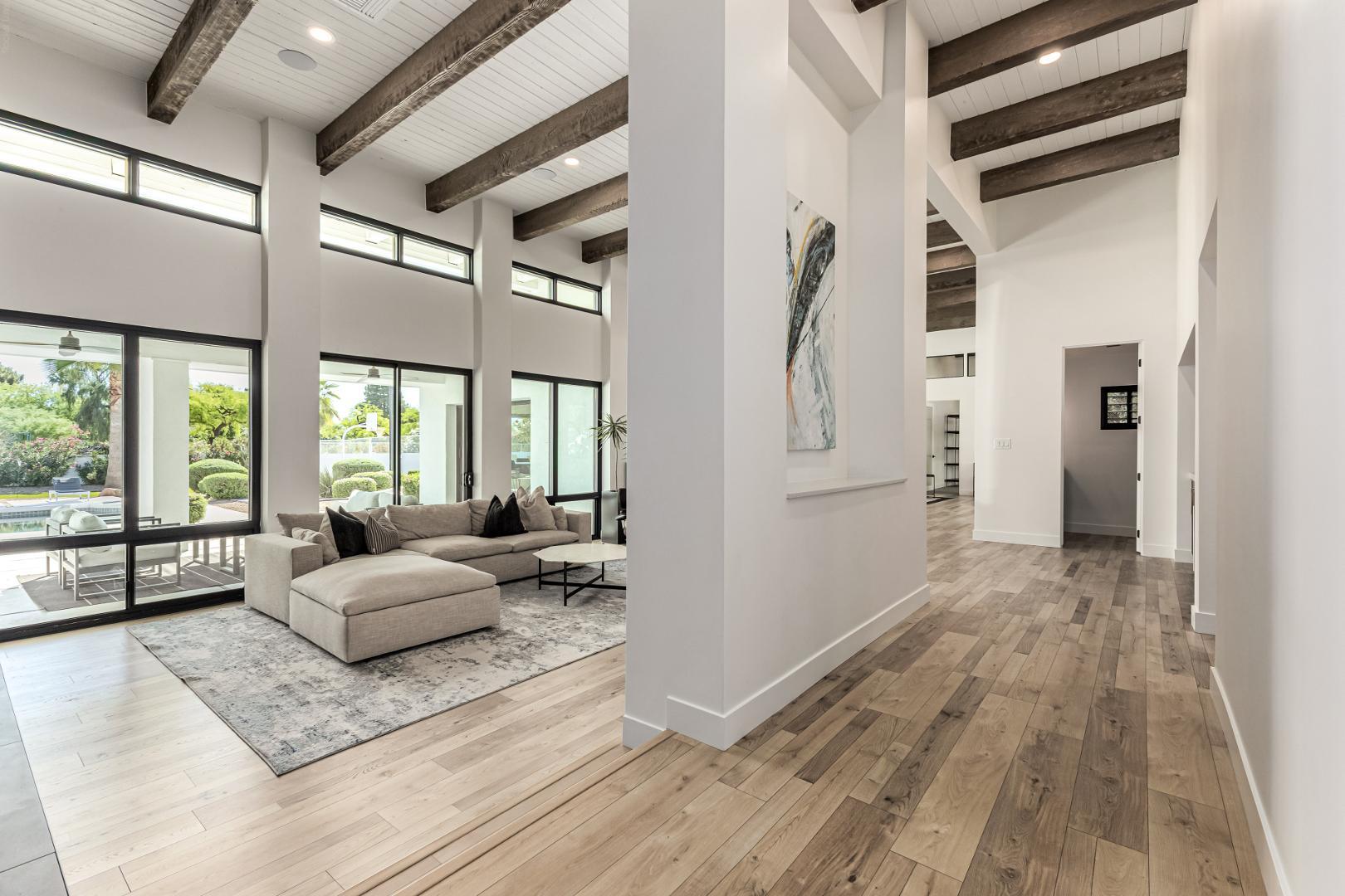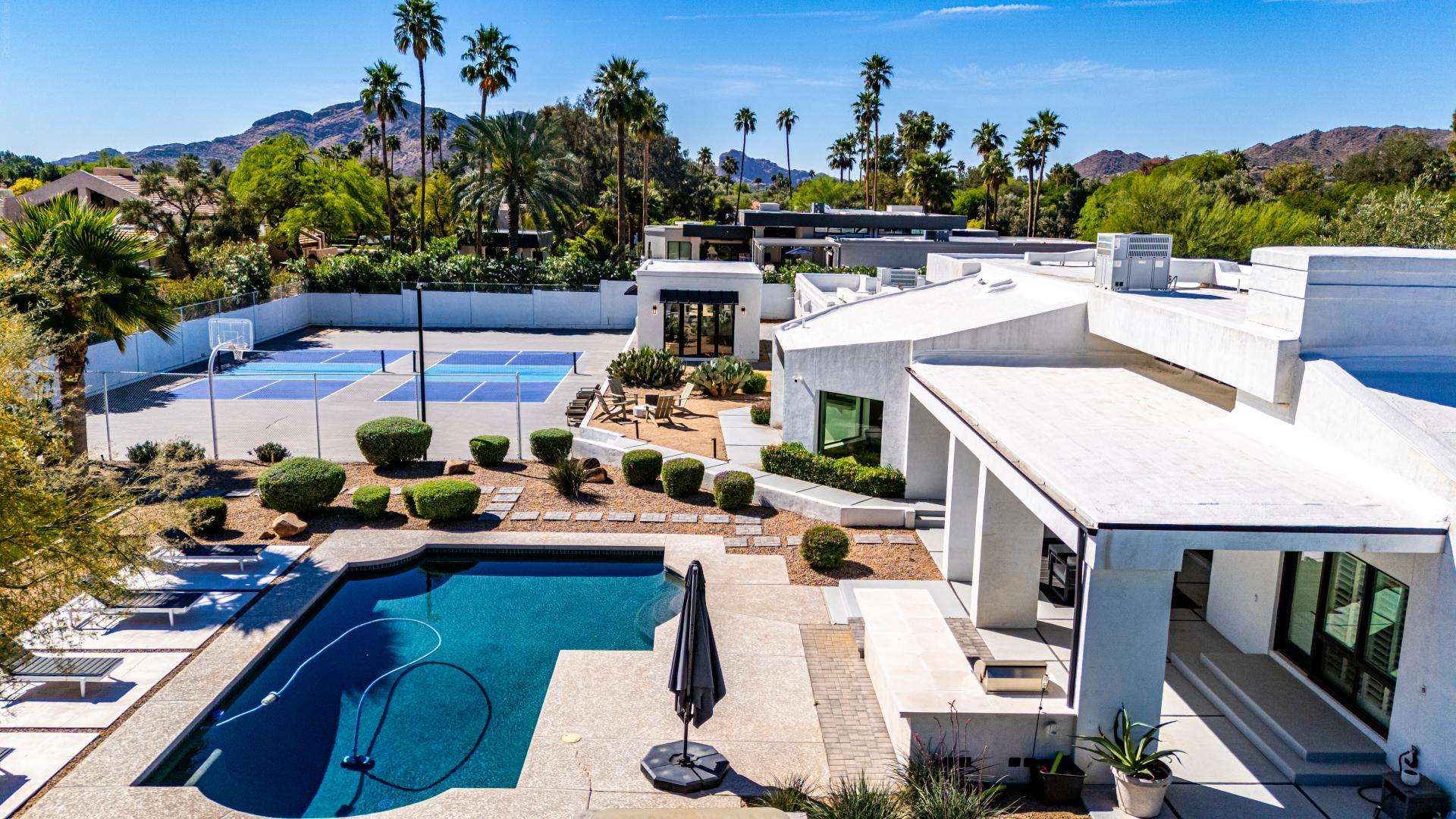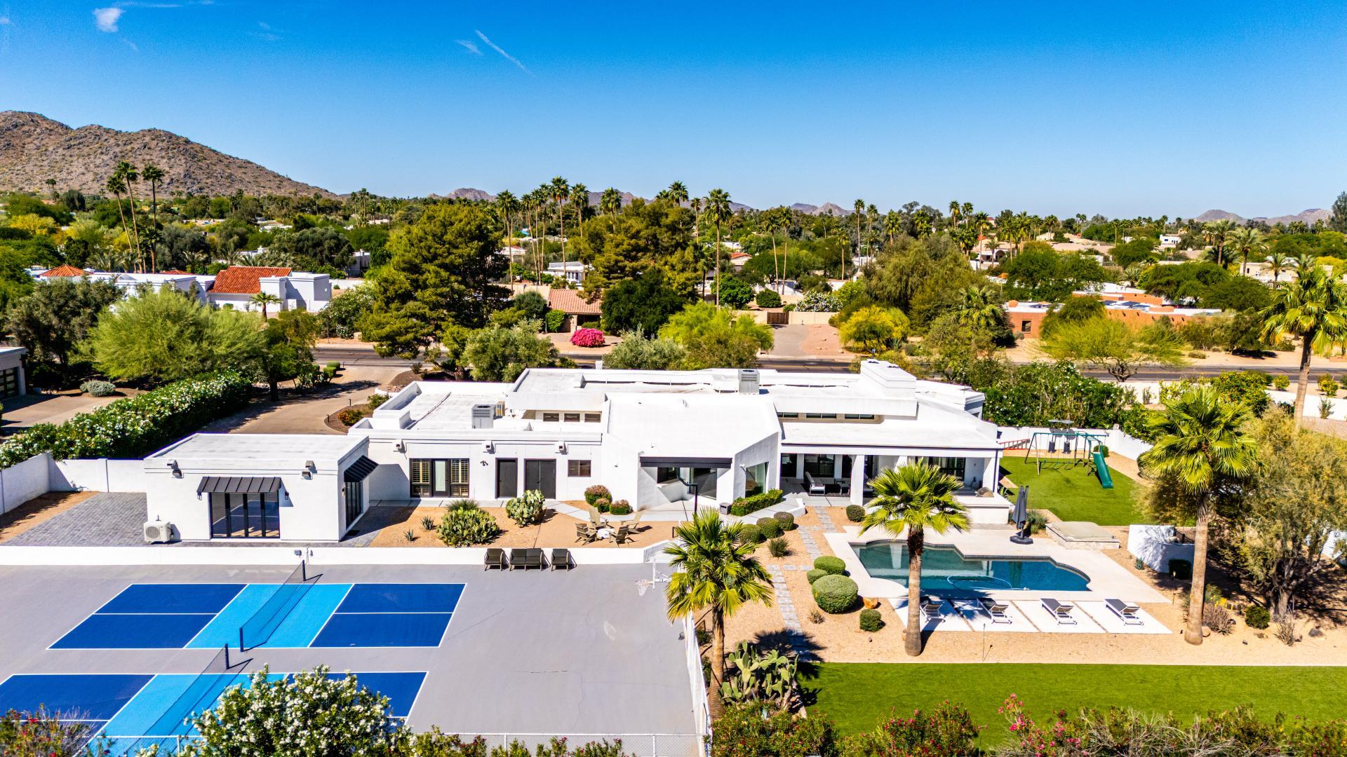 Indulge in the ultimate expression of refined desert living within this private Paradise Valley estate, where timeless elegance meets resort-style amenities. Nestled on just over an acre of lush, manicured grounds, this exceptional residence offers an unparalleled blend of sophistication, scale, and serenity. From the moment you enter, exquisite Italian stone flooring and soaring, wood-beamed ceilings set a tone of understated grandeur. Designed with both elevated entertaining and effortless daily living in mind, the home features an expansive primary retreat with dual oversized walk-in closets, as well as a thoughtfully designed separate wing for family or guests. At the heart of the home, a generously appointed chefs kitchencomplete with dual pantriesflows seamlessly into multiple