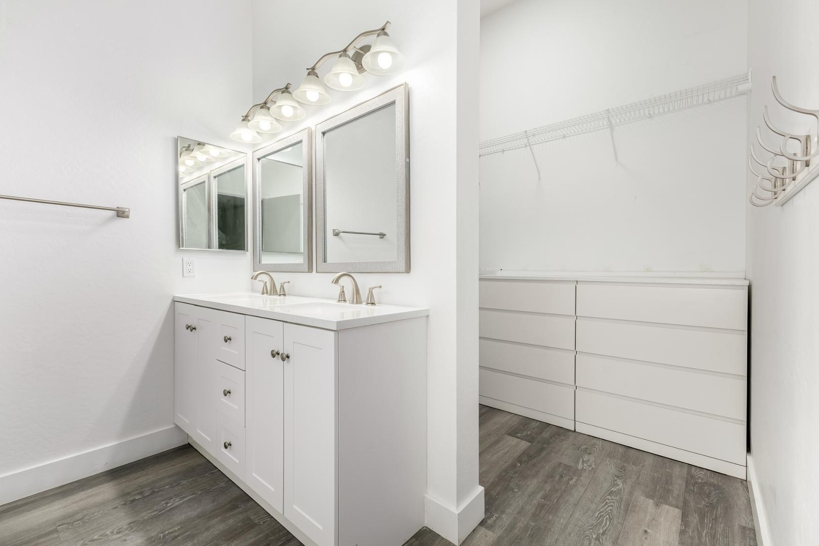 Fantastic rental opportunity in this lovely corner lot in a cul-de-sac! This 3-bedroom, 2-bath residence welcomes you with a spacious living room featuring soaring vaulted ceilings, a soothing palette, and attractive wood-look flooring. The eat-in kitchen comes with crisp white cabinetry, recessed lighting, a sleek tile backsplash, stainless steel appliances, and a handy pantry for storing culinary essentials. The sizeable primary bedroom showcases an ensuite with double sinks and a walk-in closet for an organized wardrobe. Imagine peaceful afternoons in the tranquil backyard, which offers a covered patio, pristine artificial turf, and ample space for hosting unforgettable outdoor gatherings. Don't miss out on this charming property!